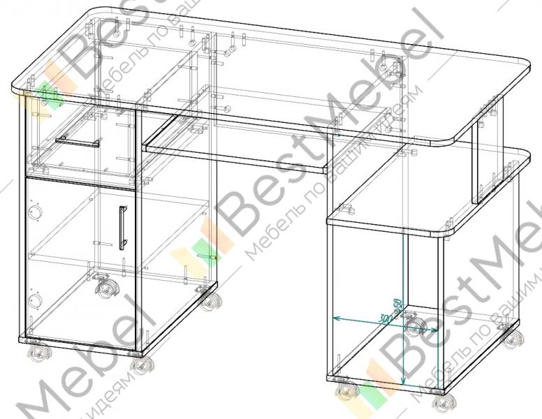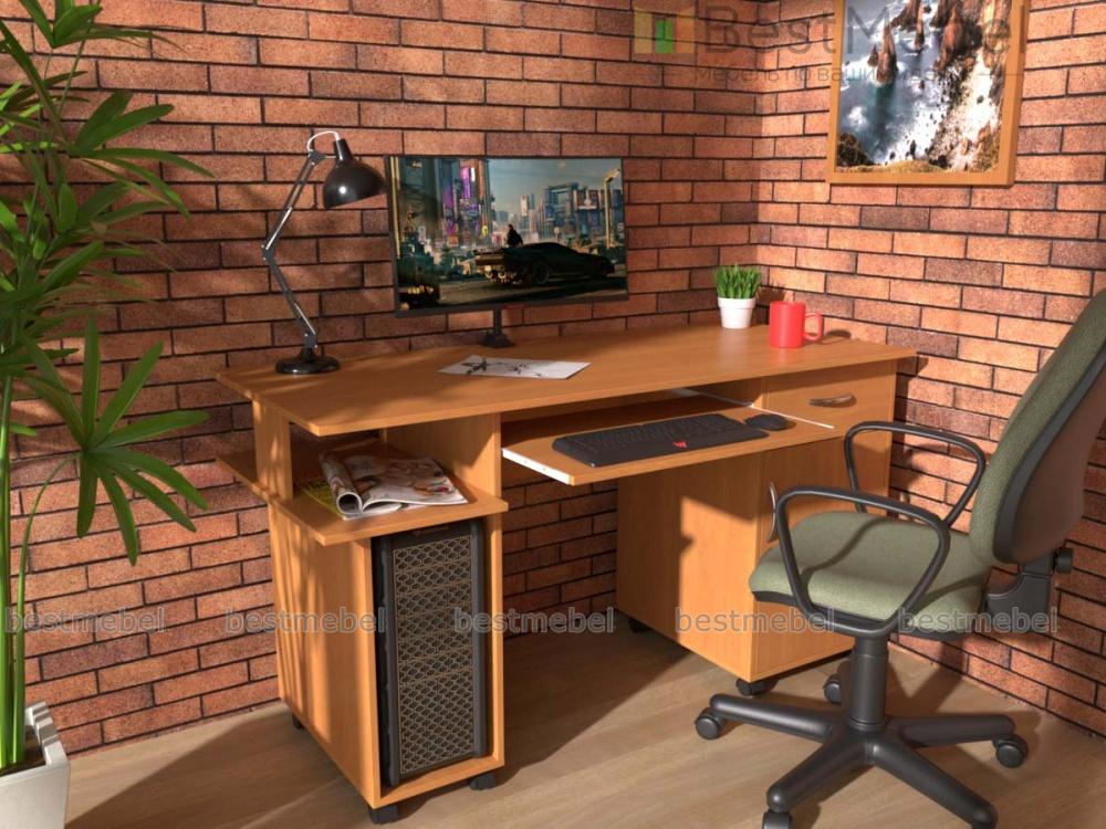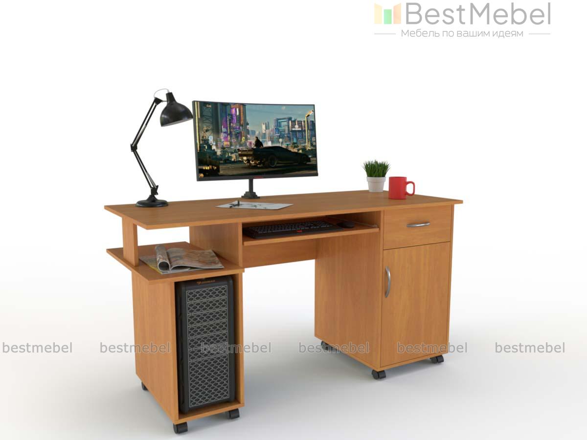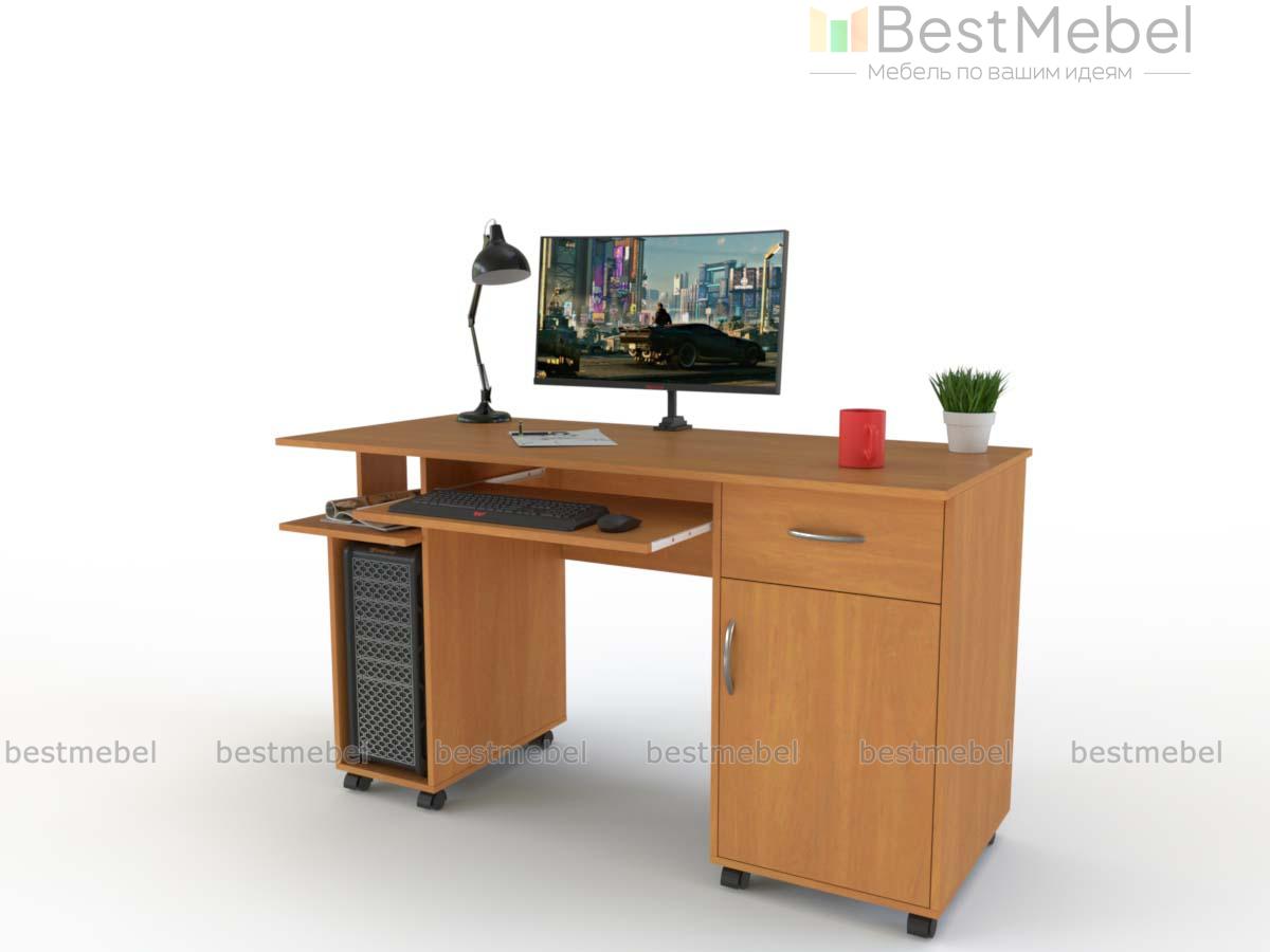 Стол письменный Соня 14 BMS – недорогое и практичное решение для домашнего или офисного интерьера. Стол отличается лаконичным дизайном, функциональностью и легко перемещается благодаря колесикам. Модель оборудована просторной прямоугольной столешницей с выкатной панелью под клавиатуру, нишами для бумаг и системного блока, а также тумбой с выдвижным ящиком для мелочей и распашным отделением. Купить стол письменный Соня 14 BMS, выполненный в древесных тонах, вы сможете в нашем интернет-магазине.