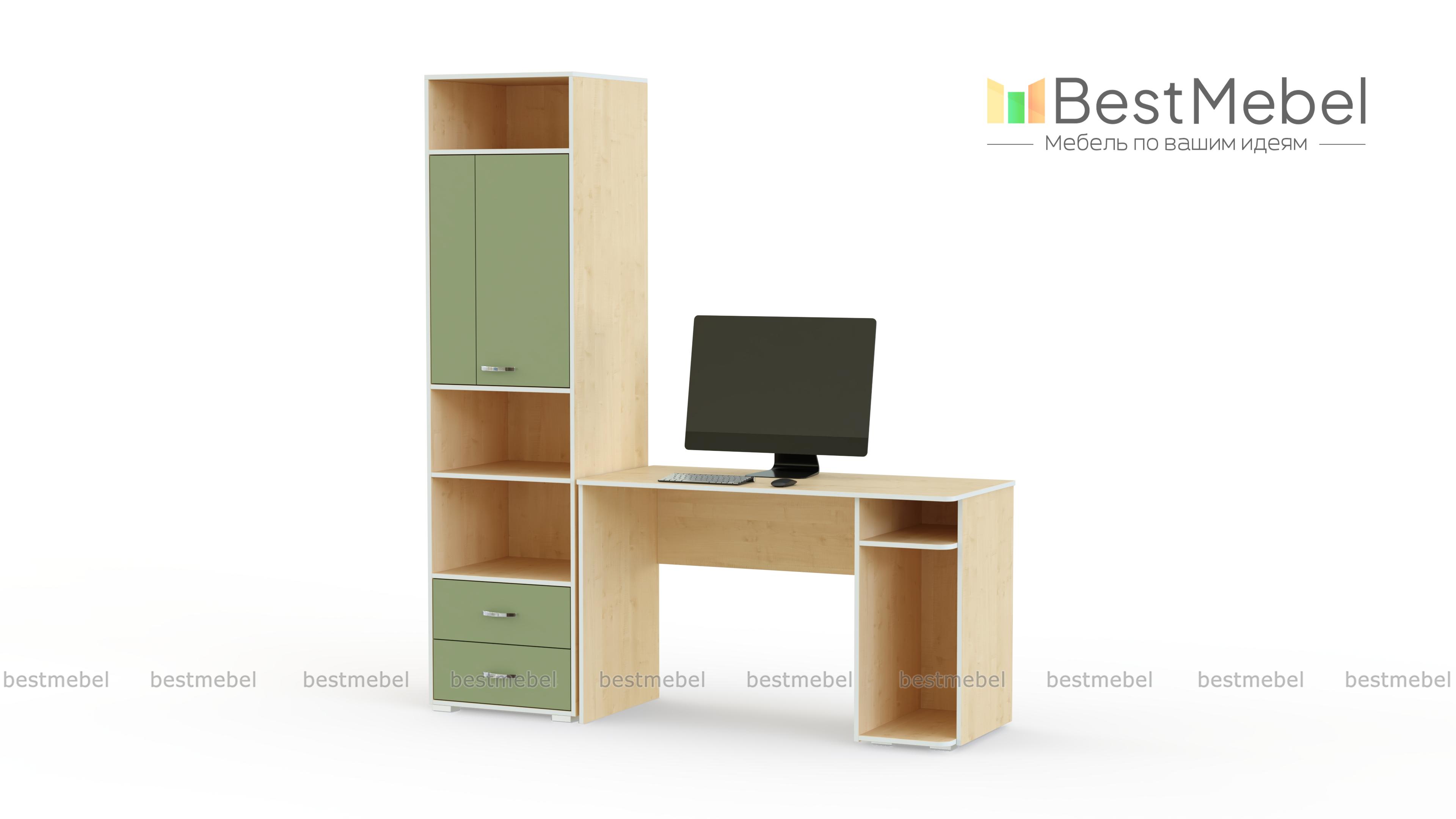 Стол Роза-09 BMS гармонично впишется в интерьер комнаты подростка и поможет оборудовать комфортную рабочую зону. Композиция включает в себя компьютерный столик с эргономичной столешницей и нишей под системный блок и комбинированный пенал с выдвижными ящиками, открытыми полками и распашным отделением. Предметы выполнены из экологичных, износостойких материалов в сочетании корпуса светлых древесных тонов и графитовых фасадов. Купить стол Роза-09 BMS приглашаем в наш интернет-магазин по приятной цене.
