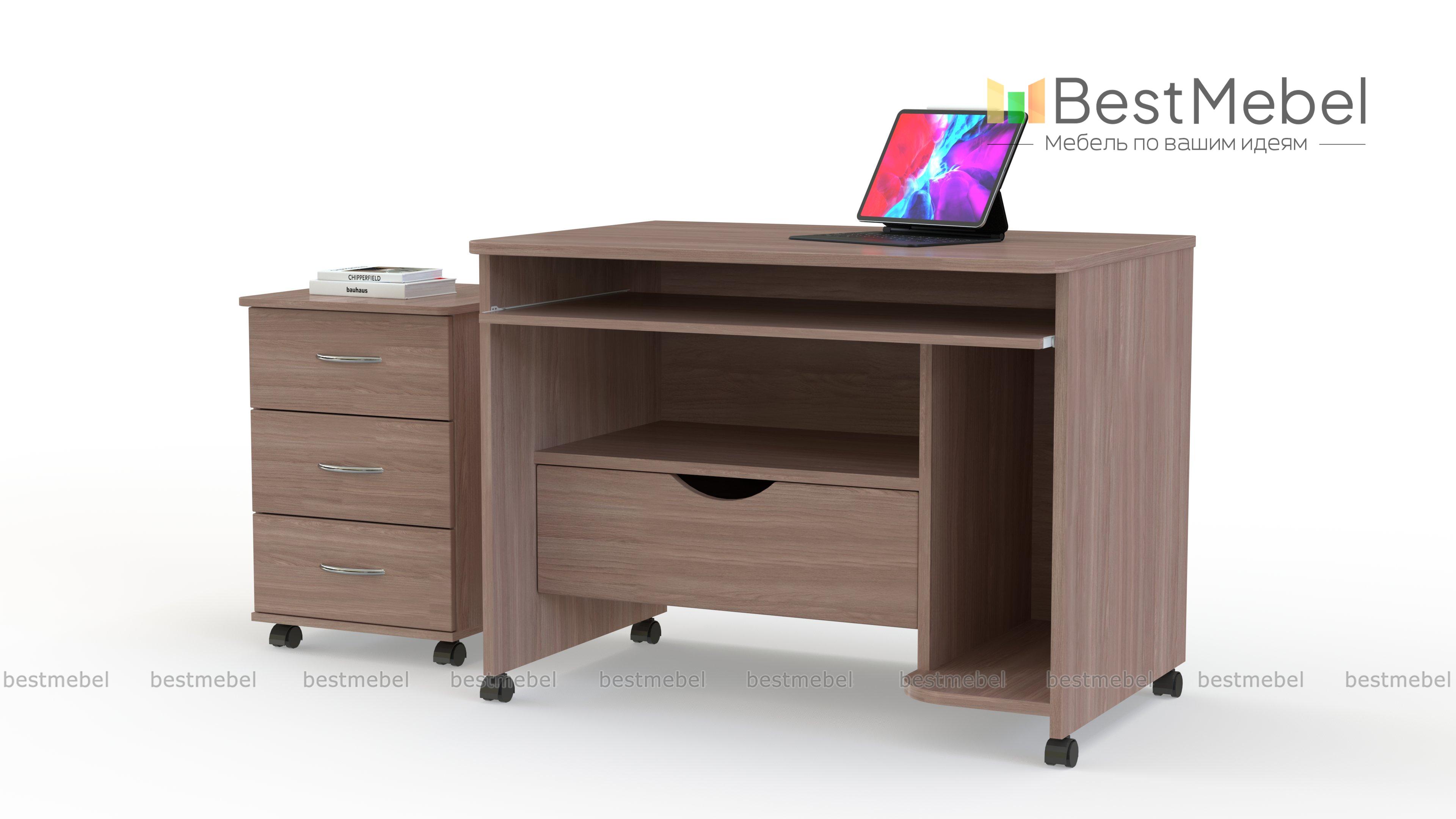 Стол с тумбой и ящиком Жизель BMS будет востребован в помещениях, где актуальна экономия полезной площади. Миниатюрный компьютерный столик оборудован выдвижной панелью для клавиатуры, секцией под системный блок, нишей и выдвижным ящиком для мелочей, а практичным дополнением станет тумба с выдвижными ящиками под канцелярские принадлежности. Углы столешниц безопасно скруглены, для простоты перемещения тумба и стол оснащены колесными опорами. Купить стол с тумбой и ящиком Жизель BMS приглашаем недорого в наш интернет-магазин.