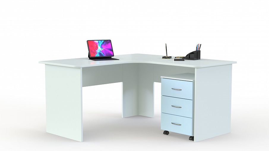 Стол угловой с тумбой Эмма-4 BMS гармонично впишется в современный интерьер и станет залогом комфортной работы или учебы. Практичная конструкция позволит задействовать угловое пространство, сэкономив полезную площадь. Модель оборудована просторной столешницей с эргономичным вырезом переднего края, выдвижной полочкой для клавиатуры и дополнена мобильной тумбой, которую вы сможете легко перемещать и установить наиболее удобным образом. Купить стол угловой с тумбой Эмма-4 BMS, выполненный в спокойной бело-голубой гамме, приглашаем в наш интернет-магазин.