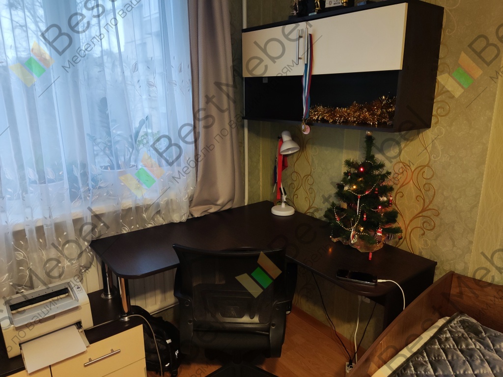 Заказ 00000252127, Угловой письменный стол для двоих Канзас 34 BMSЗаказывали этот стол для детской комнаты. Искали именно угловую модель, чтобы у каждого ребёнка было свое рабочее место. По ширине стол идеально вписался в размеры комнаты.Плюсы:Длина столешницы более 1,7 метра . Это очень удобно. Дети не мешают друг другу, свободно размещают учебники, канцелярию, у каждого теперь своя полка и по два отдельных ящика. Конфликтов из-за места теперь нет + в комнате стало легко поддерживать порядок.Качество сборки и материалы. Стол приехал в надежной упаковке, все детали были целы. Собирали по инструкции, процесс стандартный. Фасад тумб и столешница выглядят аккуратно, заявленного цвета «венге/дуб сонома».Угловая форма позволяет каждому сидеть в удобном положении.Отличное соотношение цены и качества.Недостаток: качество кромки на столешнице. Этот недостаток легко устраняется покупкой кромки на маркетплейсе за копейки. Запах ДСП держится какое-то время, но со временем проходит.Итог: Стол «Канзас-34» — нам идеально подошёл. Комфортно, уютно, удобно и со вкусом. Рекомендую.