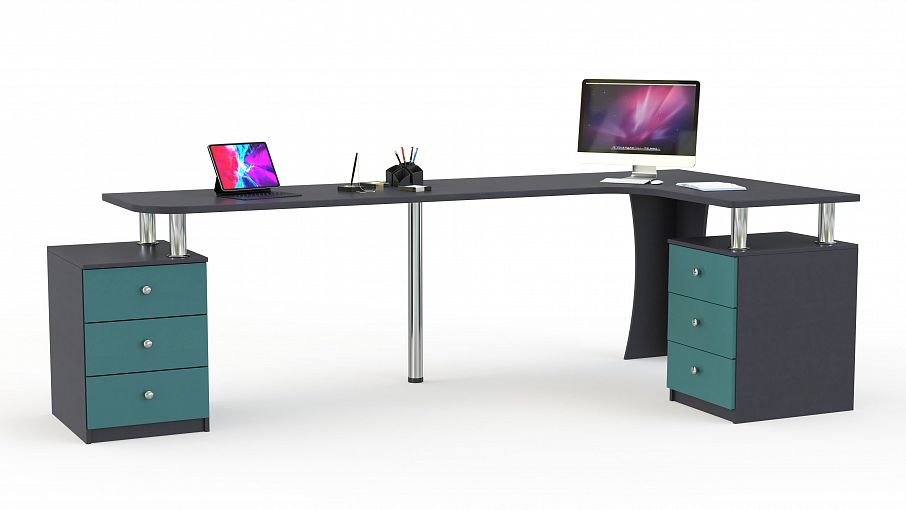 Угловой письменный стол для двоих Колор 58 BMS легко впишется в интерьер современной детской и сэкономит полезную площадь для активных игр. Модель оборудована широкой, безопасно скругленной по углам столешницей, опирающейся на две тумбы с выдвижными ящиками для канцелярских мелочей и регулируемую стойку. Корпус черного цвета дополняют цветные яркие фасады с ручками-кнопками. Купить угловой письменный стол для двоих Колор 58 BMS по доступной цене вы сможете в нашем интернет-магазине.