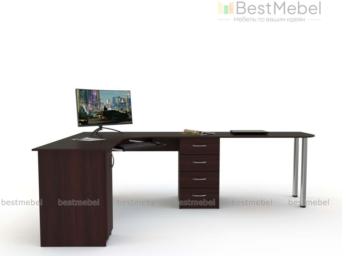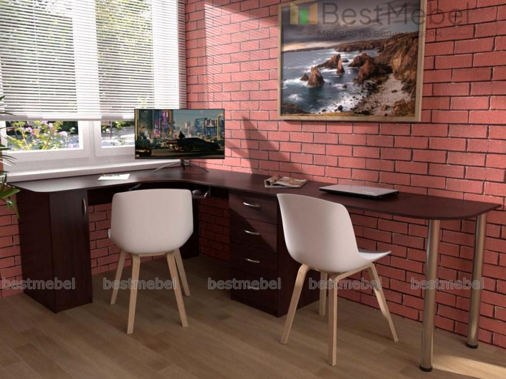 Угловой письменный стол для двоих Вента 73 BMS выполнен в темных древесных тонах с хромированной фурнитурой, отличаясь лаконичным и функциональным дизайном. Модель оборудована столешницей Г-образной формы, безопасно скругленной по углам, двумя тумбами – с выдвижными ящиками и распашной, выкатной панелью под клавиатуру и мобильной подставкой под системный блок. Устойчивость конструкции обеспечат регулируемые опоры. Купить угловой письменный стол для двоих Вента 73 BMS и сэкономить полезную площадь комнаты вам поможет наш интернет-магазин.