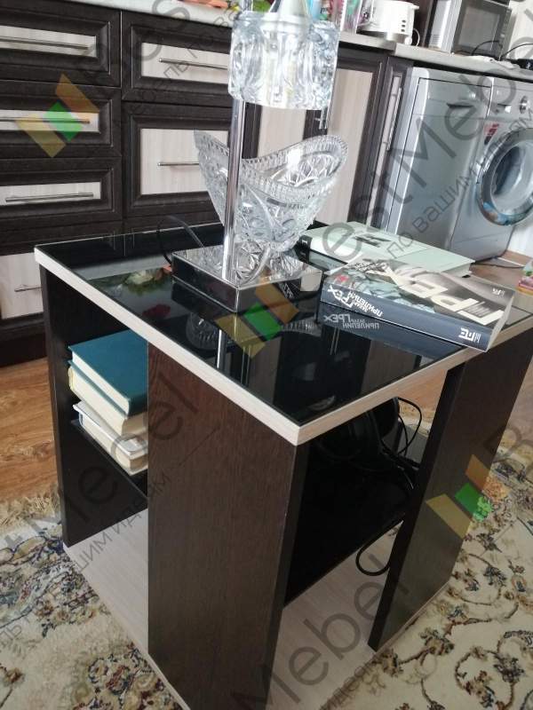 Долго искали небольшой функциональный столик на колёсиках, чтобы поставить возле дивана на кухне. Понравился столик на Бест-мебель. Хорошо, что можно комбинируя, подобрать цвет под нашу мебель. Ещё понравилась стильная стеклянная столешница любого цвета, на которую можно, не опасаясь, поставить горячее. Мы выбрали чёрный цвет столешницы. Столик вместительный, можно положить и книги, и др. (Заказ №00000374313) Спасибо Бест-мебели!