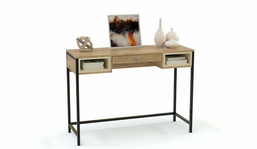Консольный столик Берри 10 BMS станет элементом дизайна уютного лофта и компактно разместит необходимые под рукой мелочи и предметы декора. Модель оборудована достаточно просторной прямоугольной столешницей, выдвижным ящиком и боковыми открытыми секциями, выделенными бежевым цветом. Выполненный в теплом крафтовом оттенке, столик располагается на прочном, но при этом легком каркасе из металлического профиля. Купить консольный столик Берри 10 BMS приглашаем в наш интернет-магазин.