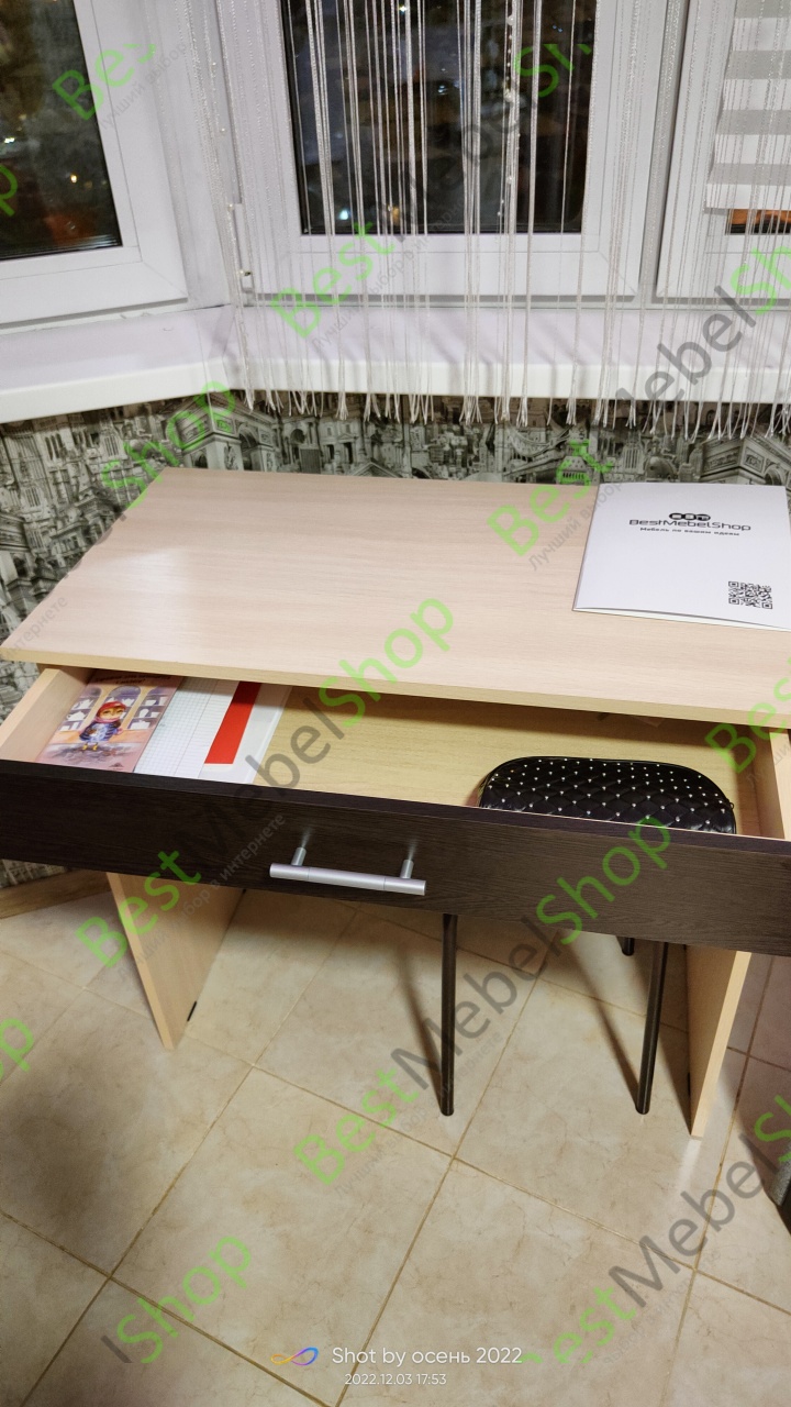 Стол получили в подарок за 1 рубль при заказе мебели. Очень удобный и компактный. Идеально подошел для работы на лоджии. Спасибо БестМебельШоп за хороший сервис и акции! Заказ 00000795547
