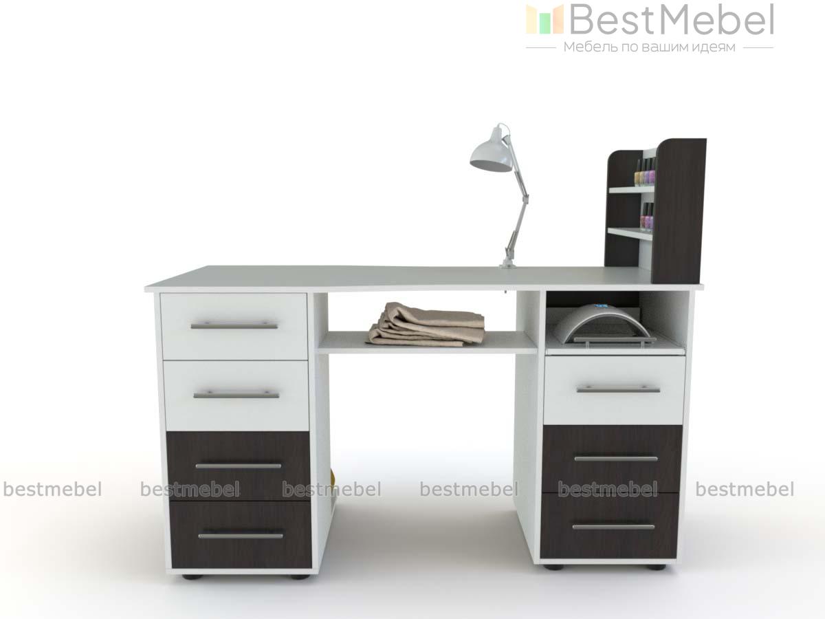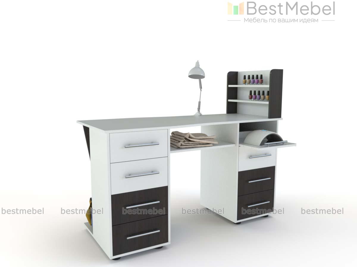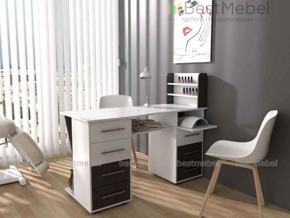 Стол маникюрный Кларисса BMS привлекает эргономичным дизайном, удобным для мастера и клиента. Модель оборудована просторной, скругленной по углам столешницей с полкой, подставкой под лаки и двумя тумбами с выдвижными ящиками и выкатной полочкой для хранения инструментов и материалов. Со стороны клиента одна из тумб оборудована нишей с крючком под сумки. Купить стол маникюрный Кларисса BMS для меблировки современного салона приглашаем к нам в интернет-магазин.