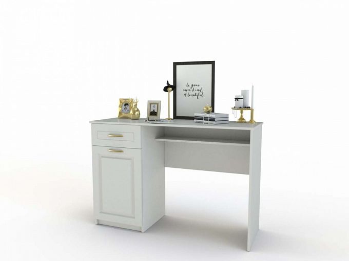 Стол туалетный Полли 12 BMS – элегантная классика с рамочными фасадами в светлых древесных тонах. Модель оборудована столешницей прямоугольной формы и тумбой с выдвижным ящиком и распашным отделением с полкой для хранения средств по уходу и аксессуаров. Удобные средние габариты столика позволят легко разместить все необходимые мелочи, экономно используя пространство. Купить стол туалетный Полли 12 BMS по доступной цене приглашаем к нам в интернет-магазин.