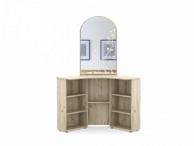 Туалетный стол Мартинелла 4 BMS украсит классический спальный интерьер и сделает уход за собой комфортнее. Благодаря угловой конструкции столик экономно использует пространство, а открытые полочки для хранения мелочей придают ему легкость. Выполненная в светлых древесных тонах, модель оборудована эргономично вырезанной столешницей и скругленным зеркалом с фантазийным пескоструйным рисунком. Купить туалетный стол Мартинелла 4 BMS с возможностью выбора цвета приглашаем в наш интернет-магазин.