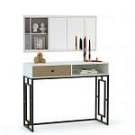 Туалетный стол Юлия 13 BMS станет частью элегантного интерьера с элементами стиля лофт. Модель с просторной прямоугольной столешницей, оборудованная выдвижным ящиком и нишей для хранения мелочей, дополнена большим навесным зеркалом. Корпус в темном оттенке с имитацией поверхности камня сочетается со светлым фрезерованным фасадом, а каркас с фигурными боковинами выполнен из металлического профиля. Купить туалетный стол Юлия 13 BMS приглашаем в наш интернет-магазин.