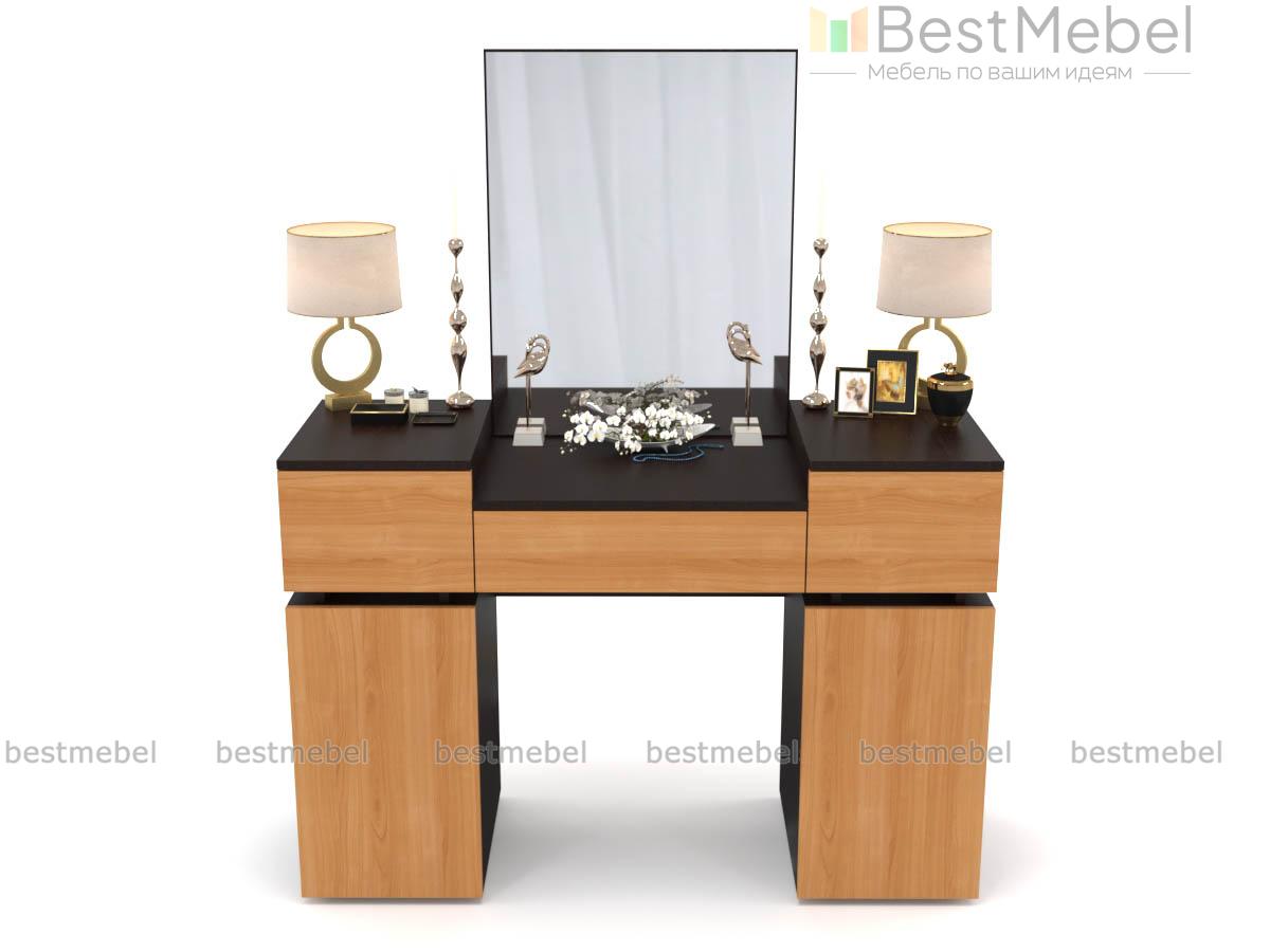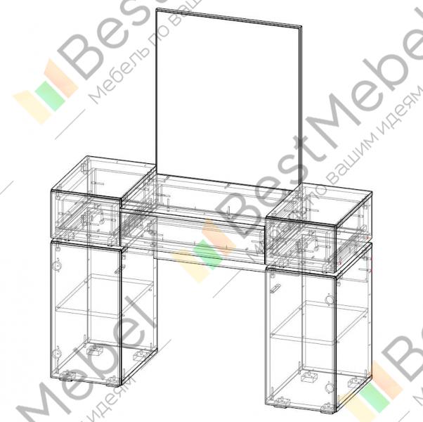 Вместительный комплект, одинаково подходящий классическому и современному помещению. Большое зеркало сделает уход за собой легким и приятным, а множество отделений оригинально расположенных тумб обеспечат аккуратное хранение самым разным мелочам. Под столешницей имеется выдвижной ящик для вещей, которые всегда должны быть под рукой. Отделка туалетного столика 1 Hyper BMS контрастная под массив дерева, а оптимальный цвет вы сможете подобрать в нашем интернет – магазине по демократичной цене.