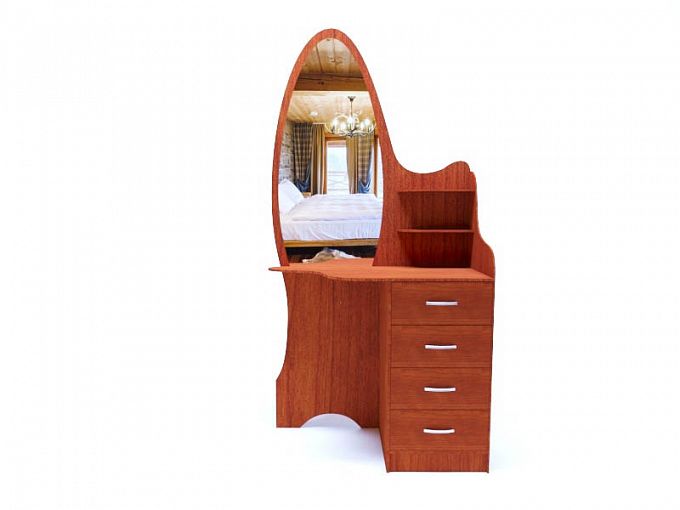 Классическое женственное трюмо Белла BMS не только украсит спальню, но и позволит компактно разместить множество необходимых для ухода за собой мелочей. Панель с большим овальным зеркалом почти в полный рост дополнена эргономично изогнутой столешницей для наиболее удобного нанесения макияжа. Справа от зеркала расположились полочки для косметики, под столешницей – вместительная тумба с четырьмя выдвижными ящиками. Выполняется туалетный столик в сдержанных цветах под массив дерева, подобрать оптимальный из которых вы сможете в нашем интернет – магазине.