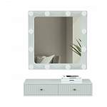 Туалетный столик Бетти 15 BMS эффектно дополнит спальни в стиле модерн или минимализм. Элегантная подвесная модель с фактурным фасадом оборудована двумя выдвижными ящиками с легким и бесшумным выдвижением и износостойкой ламинированной столешницей. Для создания равномерного освещения по периметру квадратного гримерного зеркала расположены светодиодные лампы. Купить туалетный столик Бетти 15 BMS вы сможете в нашем интернет-магазине, по желанию изменив цвет и размеры.