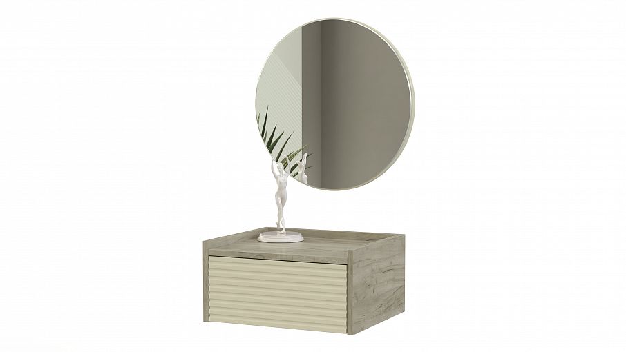 Туалетный столик Гойя 16 BMS поможет оформить макияжную зону, отвечающую модным трендам в дизайне. В подвесной композиции, состоящей из тумбы и большого круглого зеркала, сочетаются легкость, эстетика и удобный функционал. Фасад выдвижного отделения для хранения косметики украшен горизонтальным рельефом, красиво сочетаясь с природным древесным рисунком корпуса. Купить туалетный столик Гойя 16 BMS с выбором цвета и размеров приглашаем на сайт нашего интернет-магазина.