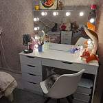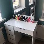 Заказ 832538. Столик брали девочке подростку, она в восторге, очень светло, краситься ей очень удобно, но при этом она за ним и уроки делает и полочки и для косметики и для учебников, место для хранения много. Привезли с разбитым зеркалом, но очень оперативно привезли новое. Лампочки и все что надо в комплекте.
