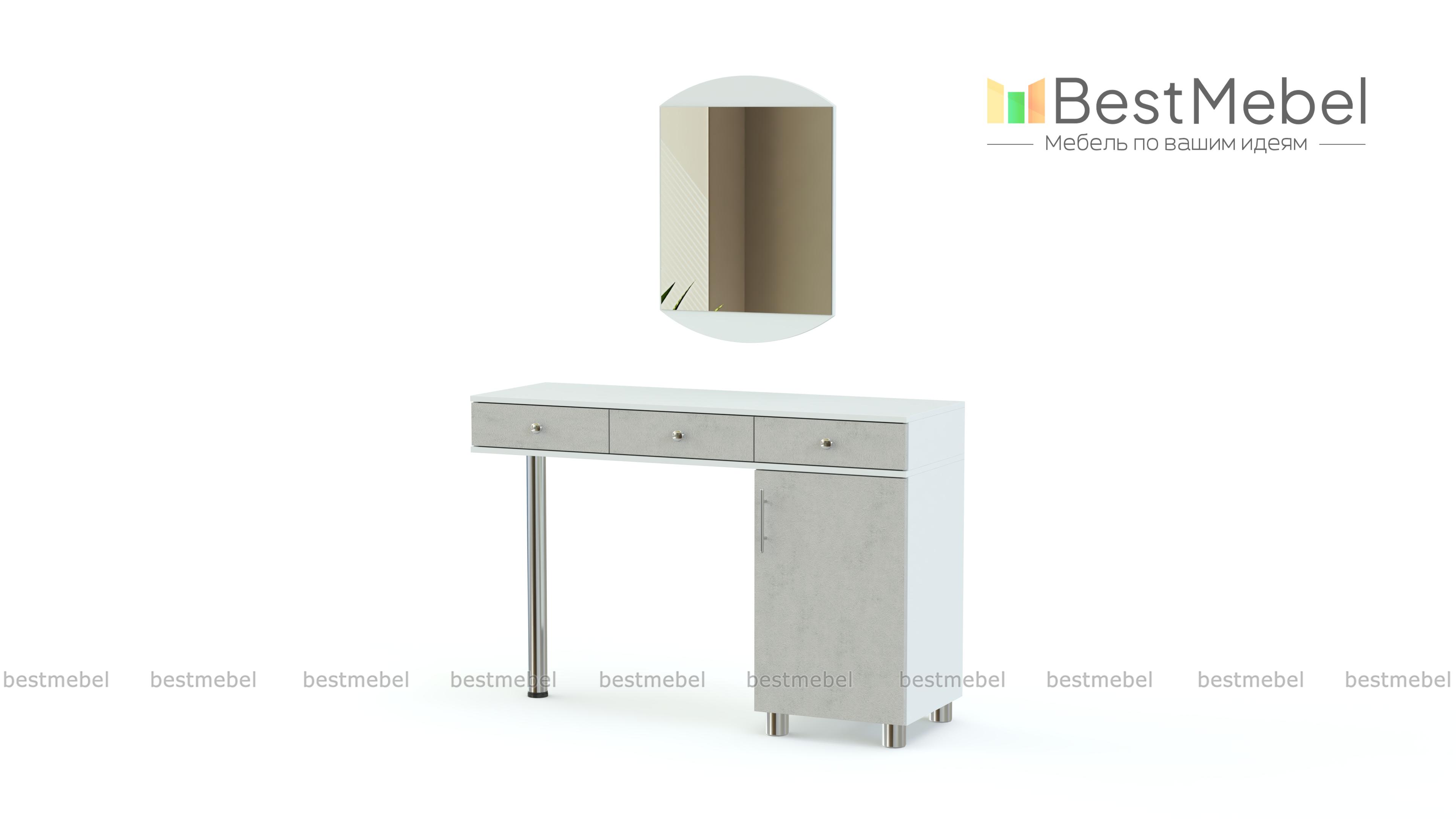 Туалетный столик Мелисса СТ 116 BMS отличается вместительностью и функциональностью, но при этом визуальной легкостью. Модель оборудована широкой столешницей, тремя выдвижными ящиками и распашным отделением с полкой, опираясь одной стороной на устойчивую хромированную опору. Элегантный вид придают столику матовые фасады и эффектное цветовое сочетание древесных оттенков. Купить туалетный столик Мелисса СТ 116 BMS по привлекательной цене приглашаем в наш интернет-магазин.