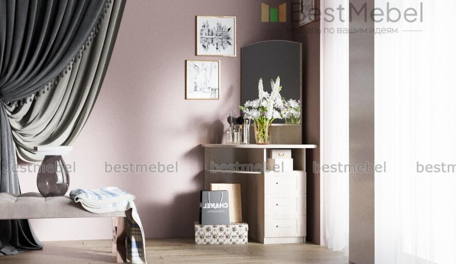 Туалетный столик угловой Мавр-12 BMS отличается миниатюрными размерами, которые делают модель прекрасным выбором для небольших помещений. Угловой столик оборудован скругленной столешницей, нишами и тумбой с тремя выдвижными ящиками, незаменимыми для хранения уходовых средств и аксессуаров. Большое зеркало дополняют открытые полочки для мелочей. Купить туалетный столик угловой Мавр-12 BMS приглашаем недорого в наш интернет-магазин, подобрав наиболее подходящее цветовое решение.
