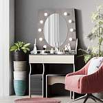 Туалетный столик Визаж № 1 BMS – элегантная модель с фигурно вырезанными боковинами для современного или классического интерьера. Компактный по размеру, столик легко впишется даже в небольшие помещения и сделает комфортнее уход за собой. Удобная система хранения для разнообразных мелочей включает в себя выдвижные ящики, ниши, распашное отделение и открытую полку, а панель с овальным зеркалом дополняют светодиодные лампочки. Купить туалетный столик Визаж № 1 BMS недорого приглашаем к нам в интернет-магазин.