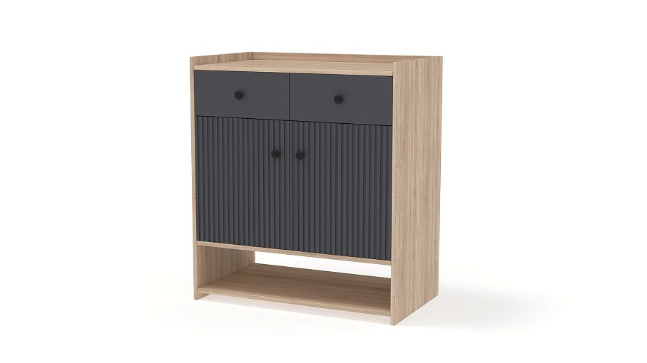 Тумба Брукс 5 BMS сочетается с другой мебелью серии для создания гармоничного интерьера. Корпус из ламинированной плиты древесного оттенка дополнили контрастным рифленым фасадом. Благодаря столешнице с бортиками, паре выдвижных ящиков, распашному отделению и открытой полке в основании у вас всегда будет достаточно места для хранения разнообразных личных вещей. Купить тумбу Брукс 5 BMS в прихожую, гостиную или спальню вы сможете на сайте нашего интернет-магазина.