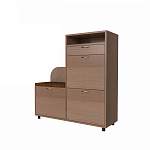 Тумба для обуви Б-5 BMS сделает интерьер прихожей комфортнее и функциональнее. Комбинированная конструкция включает в себя три откидных отделения для повседневной и сезонной обуви, выдвижной ящик и нишу, удобные для хранения мелочей и средств по уходу. Столешница в мягкой обивке из экокожи дополнена скругленным бортиком и выполняет роль сиденья. Фасады практичных древесных тонов просты в уходе и долговечны. Купить тумбу для обуви Б-5 BMS приглашаем в наш интернет-магазин по выгодной цене.
