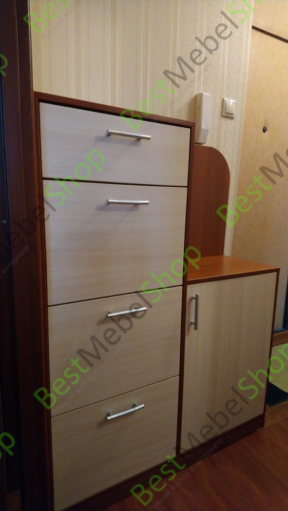 Удобно, что тумбочку можно адаптировать под свои размеры. На фото тумбочка (Ширина: 1000, Высота: 1310, Глубина: 350). Выглядит красиво. Но надо отдельно указывать желаемые размеры ящиков. Полки по умолчанию не входят, надо отдельно указывать. Возникла сложность с браком верхней крышки тумбочки (на самом видном месте). Брак переделывали, но удалось исправить только с 3 раза, по прошествии 2 месяцев.