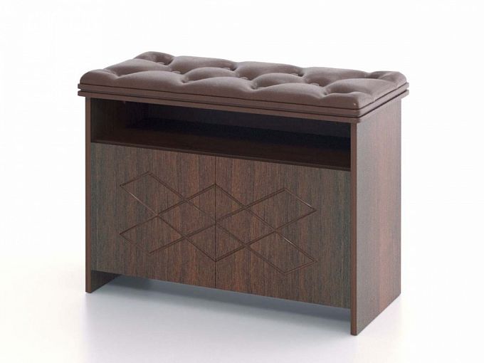 Тумба для обуви с сиденьем Kanes 4 BMS отличается уютным и респектабельным классическим дизайном. Модель выполнена в сочетании насыщенных древесных тонов с шоколадной экокожей в каретной стяжке, фасад декорирован фрезерованным рисунком. Удобное размещение обуви и аксессуарам обеспечат глухое отделение и просторная ниша, а мягкая обивка позволяет использовать тумбу в качестве сиденья. Купить тумбу для обуви с сиденьем Kanes 4 BMS по выгодной цене приглашаем в наш интернет-магазин.