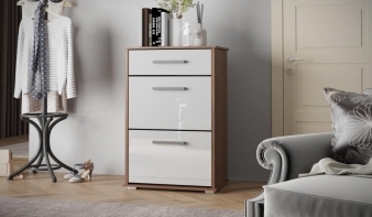 Тумба для обуви Вайт 12 BMS поможет сделать интерьер входной зоны комфортным и эстетичным. Комбинированная модель оборудована двумя вместительными откидными секциями под обувь и дополнена выдвижным ящиком, незаменимым для хранения уходовых средств и аксессуаров. Корпус древесного оттенка эффектно сочетается с белоснежным глянцевым фасадом, износостойким и простым в уходе. Купить тумбу для обуви Вайт 12 BMS для элегантной современной прихожей приглашаем к нам в интернет-магазин.