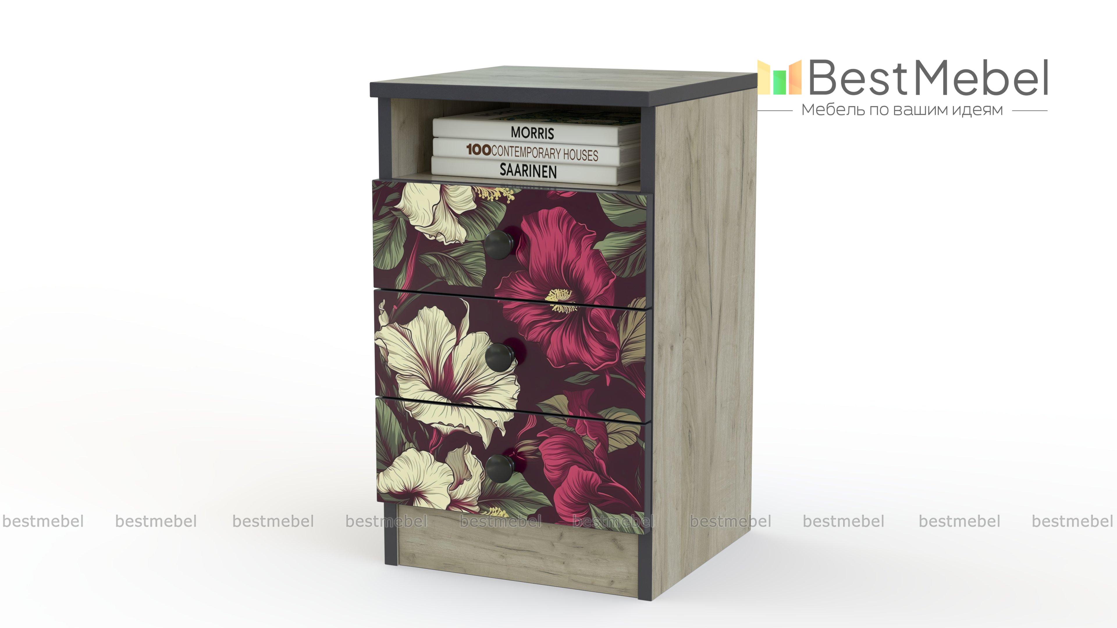 Тумба Эльба 15 BMS с крупным цветочным рисунком на фоне корпуса под бетон выглядит ярко и свежо. Даже сдержанный современный интерьер не будет скучным, а за функциональность отвечают три выдвижных ящика и глубокая ниша. Модель станет практичным выбором как для спального интерьера, так и для гостиной или подростковой комнаты, помогая легко поддерживать порядок в мелочах. Купить тумбу Эльба 15 BMS вы сможете на сайте нашего интернет-магазина, подобрав нужные цвета и размеры.