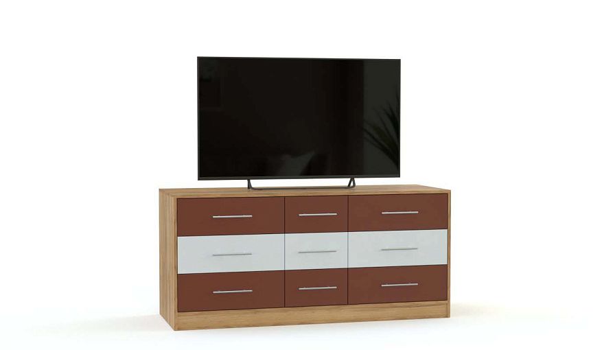 Тумба Класс 13 BMS поможет вам оформить зону ТВ и компактно разместить множество мелочей. Яркая ультрасовременная модель с матовым фасадом эффектно сочетает в оформлении терракотовый и белый. Три малых и шесть больших выдвижных ящиков, оснащенных ручками-рейлингами, позволят всегда держать под рукой сопутствующие аксессуары и прочие необходимые вещи. Купить тумбу Класс 13 BMS для меблировки гостиной или молодежной комнаты вы сможете на сайте нашего интернет-магазина.