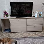 Тумба классная! Переживала, что маленькая (1300х400х330), но оказалась вместительная! Смотрится стильно, аккуратно! Пыль не видна, что немало важно)) Рекомендую!
