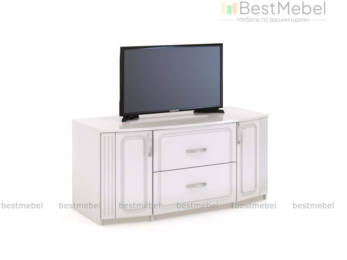 Тумба под ТВ Виктория 37 BMS гармонично дополнит классические интерьеры. Эффектная низкая модель с выпуклым трехгранным фасадом в белом глянце декорирована рамочной фрезеровкой. Удобная система хранения представлена двумя выдвижными ящиками для бытовых мелочей с ручками-скобами и двумя распашными отделениями с полками, а разместить телевизор поможет широкая столешница. Купить тумбу под ТВ Виктория 37 BMS по выгодной цене приглашаем к нам в интернет-магазин.