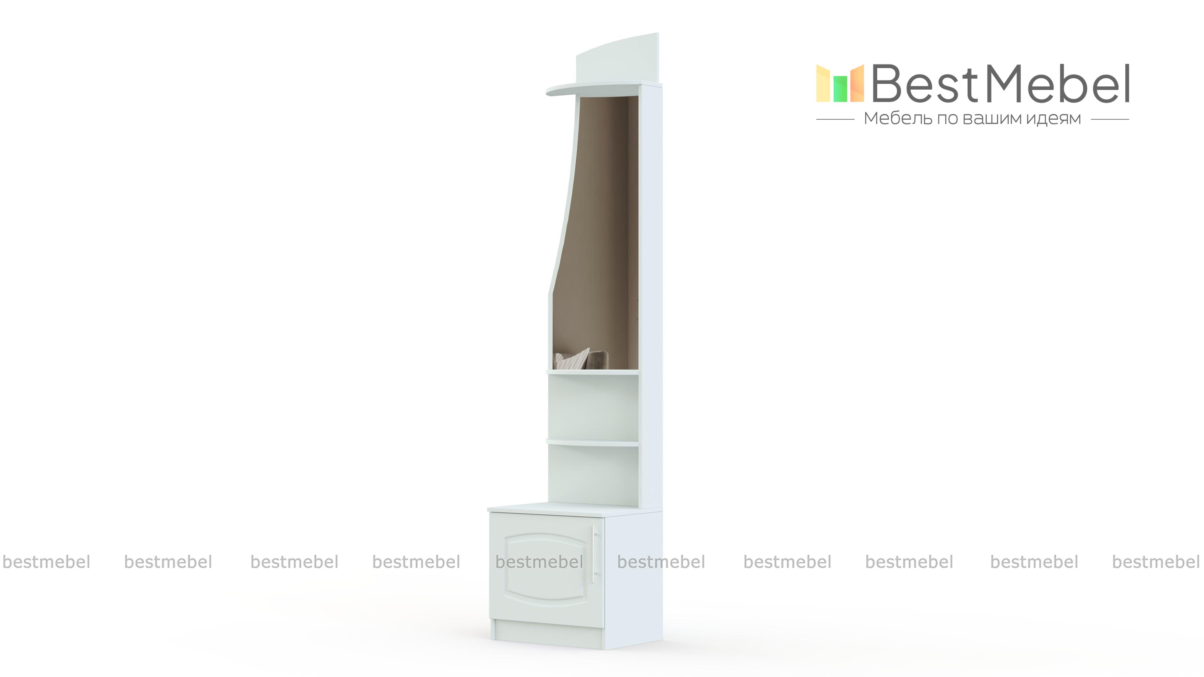 Тумба с зеркалом Марио 7 BMS – это торцевой элемент, который станет практичным дополнением модульного комплекта в прихожей. Открытая секция оборудована скошенным распашным отделением для обуви, открытыми скругленными полками для мелких вещей и головных уборов, а также фигурно вырезанным зеркалом, незаменимым в интерьере по-настоящему комфортной входной зоны. Выполняется модель в светлых оттенках на выбор. Купить тумбу с зеркалом Марио 7 BMS по доступной цене приглашаем в наш интернет-магазин.