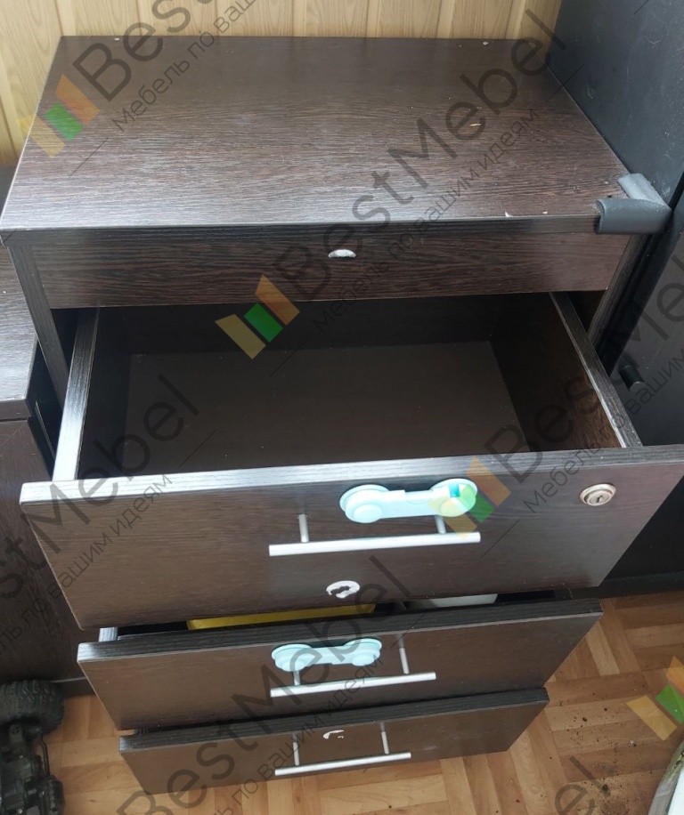 Заказ в личном кабинете №239553. Удобная тумба с замком в верхнем ящике. Легко собирается. Качественная - сначала стояла в комнате, теперь долгое время используется на балконе и не испортилась.