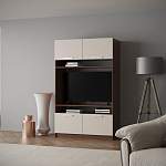 Тумба ТВ Дуэт BMS не займет много места, но позволит разместить все необходимое, от современного ТВ до книг и предметов декора за счет высоты. Модель оборудована просторной столешницей с нишей и распашными отделениями в основании, надстройка представляет собой вместительные антресоли с открытой полкой. Контрастное сочетание темного корпуса и светлых фасадов легко вписать в интерьер. Купить тумбу ТВ Дуэт BMS вы сможете недорого в нашем интернет-магазине.