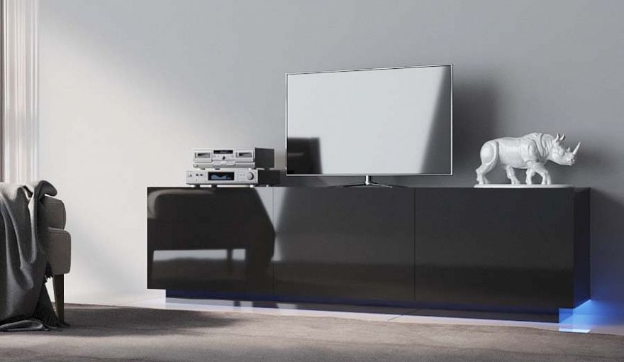 Тумба ТВ Горизонт 26 BMS – это вместительная трехдверная модель с фасадом в черном глянце. Расположенная на высоком цоколе и дополненная по периметру основания светодиодным освещением, тумба выглядит парящей в воздухе и эффектно смотрится в интерьере современной гостиной. Разместить аппаратуру, бытовые вещи и декоративные предметы вам помогут широкая столешница и распашные отделения с полками. Купить тумбу ТВ Горизонт 26 BMS по выгодной цене приглашаем в наш интернет-магазин.