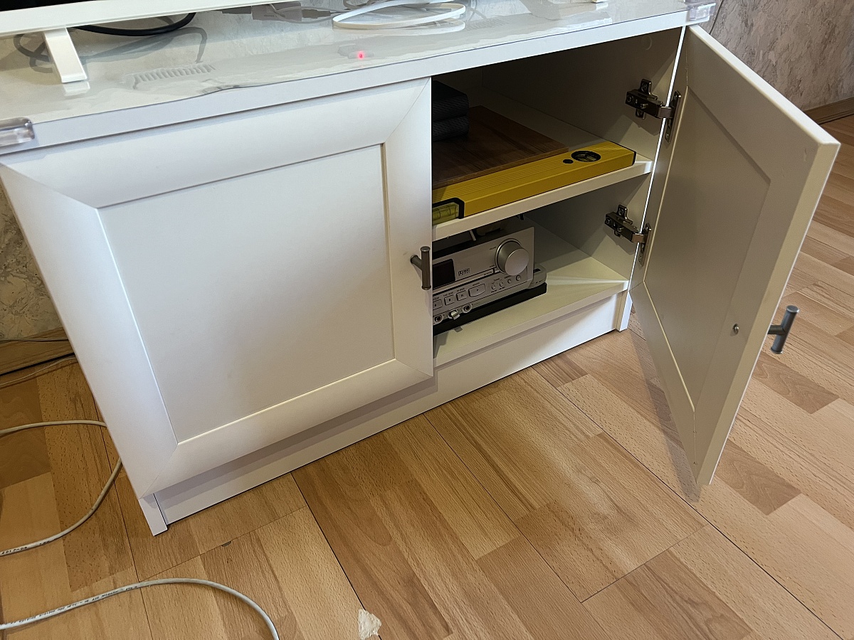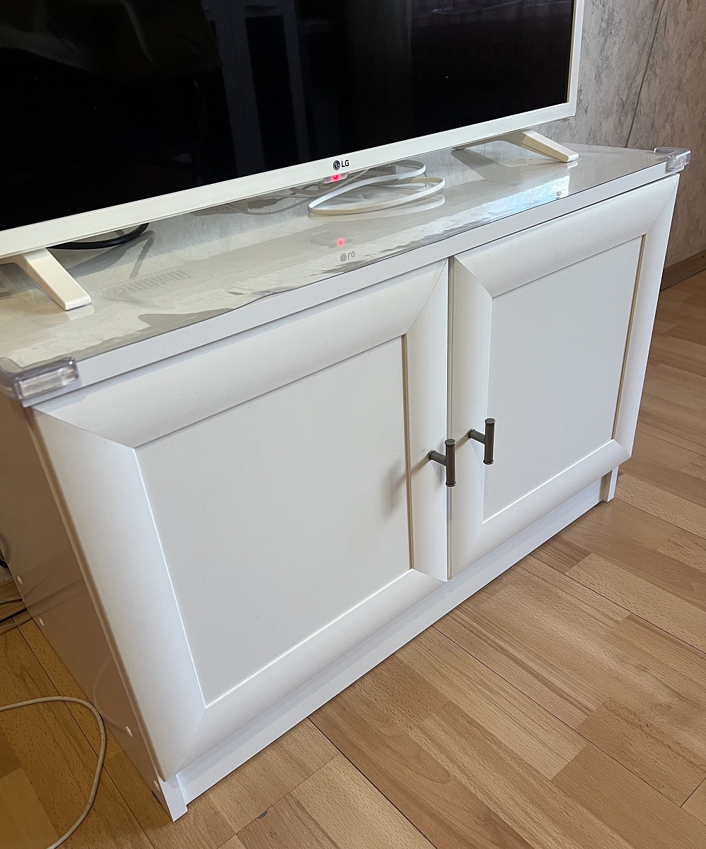 Всё выполнено отлично по нашим эскизам , ящик добавили при согласовании , т.к. на дверки получались слишком длинные .Заказ 00000330370, изделие ЭСКИЗ №00000330370 Тумба под ТВ Ф-2 BMS (1450х780х400)