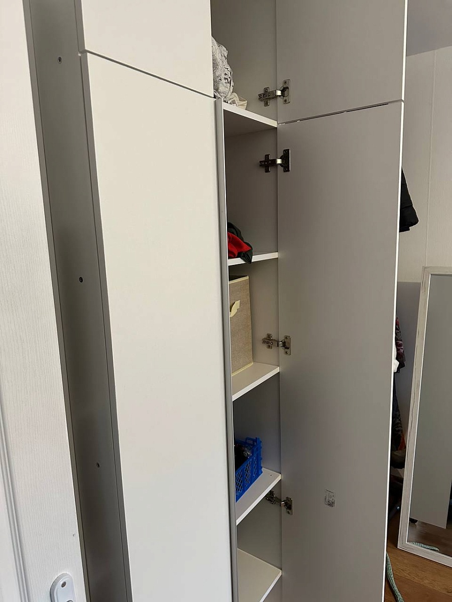 Заказ 00000903842, изделие ЭСКИЗ Шкаф распашной Остин Лайт 2 BMS (700х2400х600)Идеальный шкаф. В дополнение к стелажу был необходим узкий распашной шкаф. Сборка лёгкая, сделали быстро и как обычно качественно, доставка прямо в дом. Собрал примерно за час, поставил, загрузил и забыл. Особенно нравится возможность изготовить по индивидуальным размерам.