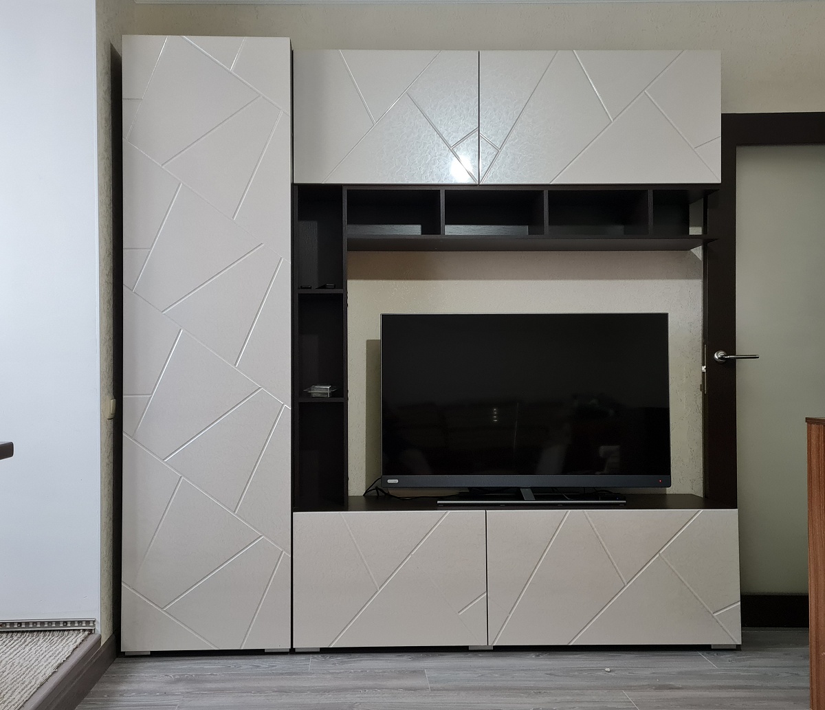 заказали в зеркальном отражении, по своим размерам. Было несколько неприятных моментов, о которых я читала в отзывах и к которым была почти готова. Привезли ночью, около двенадцати, конечно никакого звонка заранее.  Водители вежливые уставшие. Приняли оплатили. При заказе сказали сборка 10%, по факту когда позвонили в фирму партнер- 18 % без доп работ. Неприятненько, но урегулировали до 13 %. Сама стенка оказалась лучше, чем надеялись, фасады в пленке, всего хватило, но не были намечаны какие то отверстия сборщик сказал. к слову справился с этой задачей самостоятельно без доп оплаты. На мой взгляд слабоваты пуш толкатели и лучше заранее купить свои хорошие, благо дырок под них тоже не было. В целом стенкой довольна, поэтому с натяжкой но 5. По поводу брака сборщик сказал - все имеет человеческий фактор - рука сборщика на производстве ) по срокам все было отлично, претензий нет, пожелания были учтены