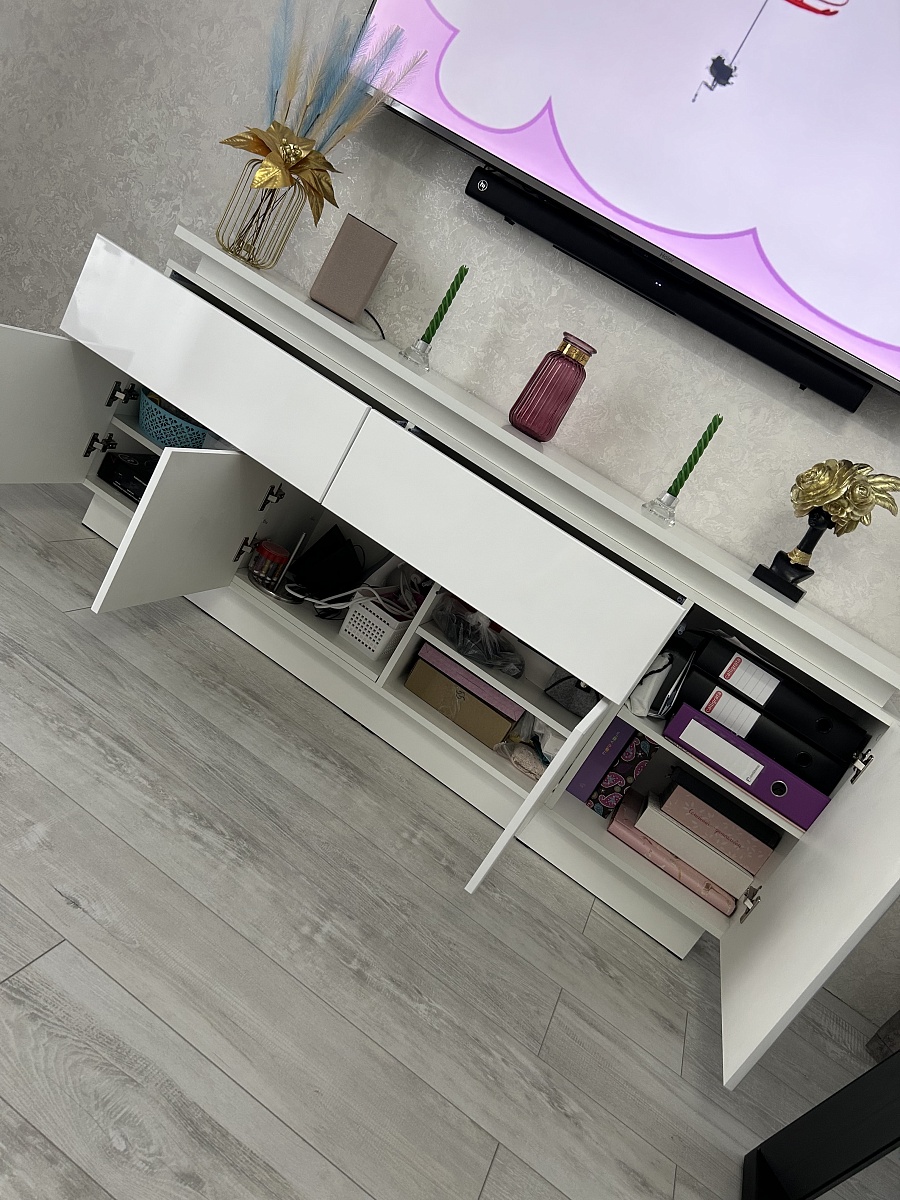 Заказ 00000882821 (№1101212),Очень рада, что обратилась в компанию «BestMebel» за Комодом Infinity Блеск 10 BMS (1750х710х350).Искала тумбу под телевизор, но запрос был на полноценный комод для домашних нужд. Тяжело было найти тумбу шириной от 170 см и высотой от 70 см, в БэстМебель огромный Плюс в том, что профессионалы изготовят мебель под Ваш размер!Заказала, изготовили быстро, привезли до адреса за город, всё в отличном состоянии, доводчики в поряде. Инструкция, конечно, целый квест, но разобрались)))Идеально вписался в мой интерьер. Классно, что под разное время года он служит мне еще отличной площадкой для создания уюта в доме.В общем, советую покупателям, ведь в «бэстмебель» приятная бонусная система, удобный сайт и огромный выбор мебели (а также цветов, материалов, фурнитуры и т.п.) под любой ваш запрос!