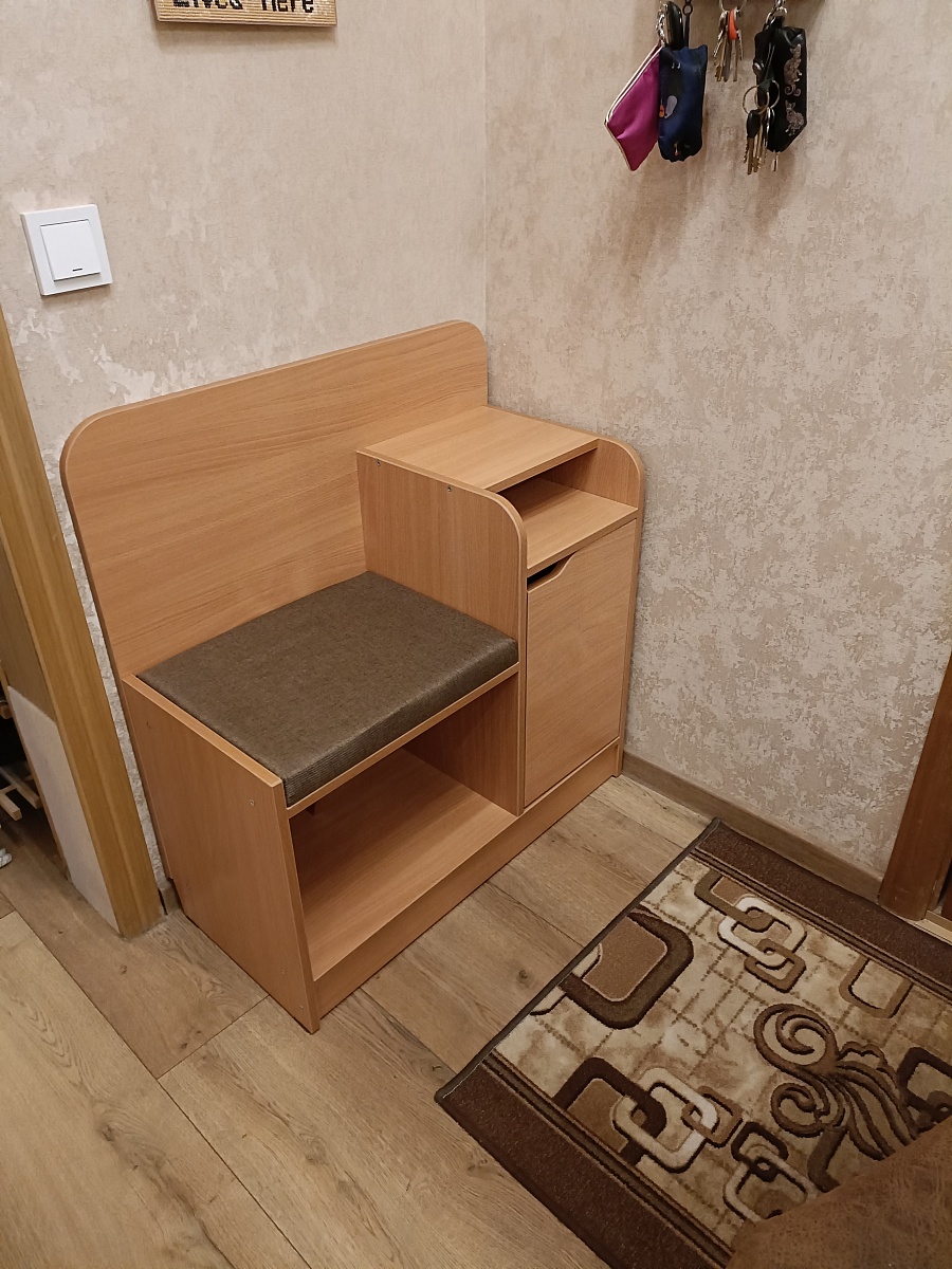 Отличная тумба! Заказали по индивидуальным размерам и цвету - встала идеально. В воскресенье заказали - в четверг утром уже привезли. Муж собрал без проблем за час. Все четко, без кривизны и косяков. Очень устойчивая, удобное сидение.