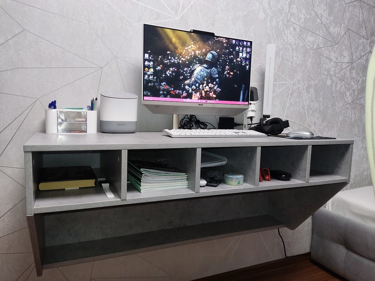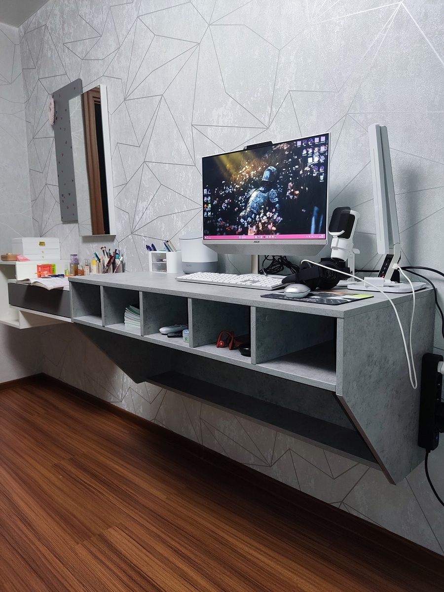 Заказ 00000298149, изделие Навесной письменный стол Хельга 1 BMS (1200х504х500)Дочке-подростку искали навесной письменный стол, но не просто плоскую доску, а функциональный с полочками. Стол МЕЧТЫ нашли на сайте Бест-Мебель. Особенно понравилось то, что при помощи программы-конструктора на сайте можно сконструировать мебель по своим размерам, цвету и прочим параметрам (добавить полочки или убрать их). Также съездили в мебельный торговый центр нашего города, где есть представитель компании Бест-Мебель. Там нам подтвердили, что заказать мебель сконструировав на сайте – это реально.В реальном виде мы этот стол на видели, отзывов на него на сайте не было. Но мы рискнули и заказали. Порадовало то, что полную оплату можно произвести после получения и проверки заказа. Это снижает риски получения некачественной продукции. За это отдельно спасибо Бест-Мебель!