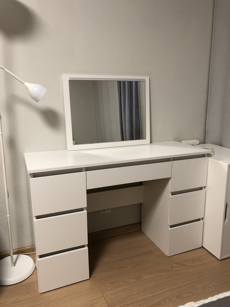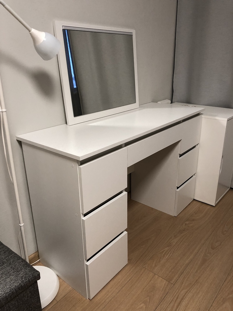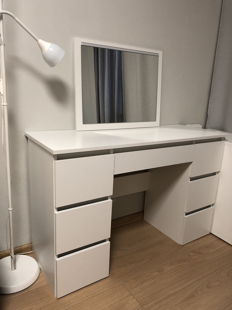 Если вы берёте не дешёвые роликовые направляющие, а приличные шариковые - получится качественный комод. Красивые рамочные фасады, уникальные ручки и грамотно продуманная система хранения. На фото корпус ясень шимо светлый, вставки дуб крафт белый. Кстати не рекомендую брать рамки фасадов в цвет корпуса (как на фото) - дизайн недостаточно "играет". Но по качеству будьте готовы к рекламациям, которые, на моём опыте, достаточно быстро удовлетворяются досылкой нужных деталей. Ну и например только сейчас на финальном фото заметил, что правые ручки ящиков на среднем уровне перекошены (т.е. придётся немного пересверлить заводские отверстия).