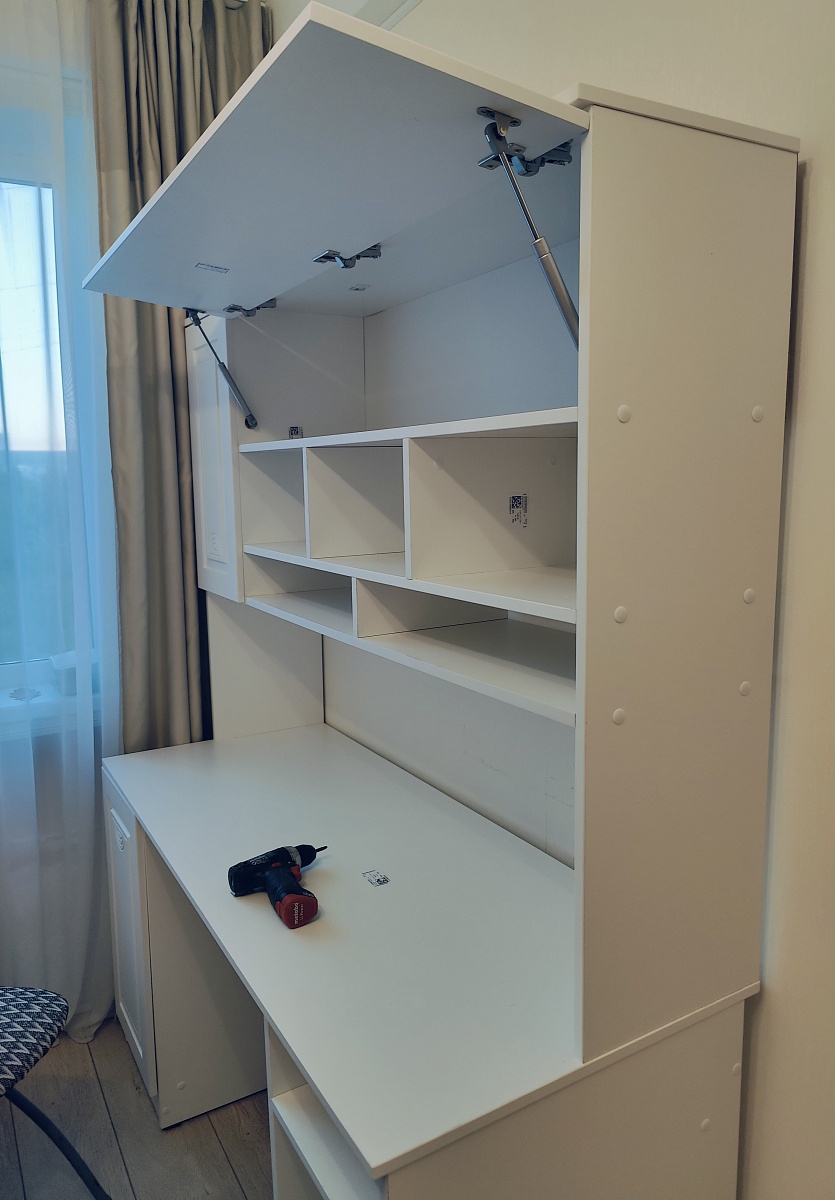 Заказ 00000873081Антресоль собралась легко, инструкция понятная, крепеж для крепления к стене был в комплекте, дополнительно заказал фасады из МДФ в белой пленке, очень качественныеСпокойной влезла вся химия в квартире в эту антресоль Ручка сам приделал