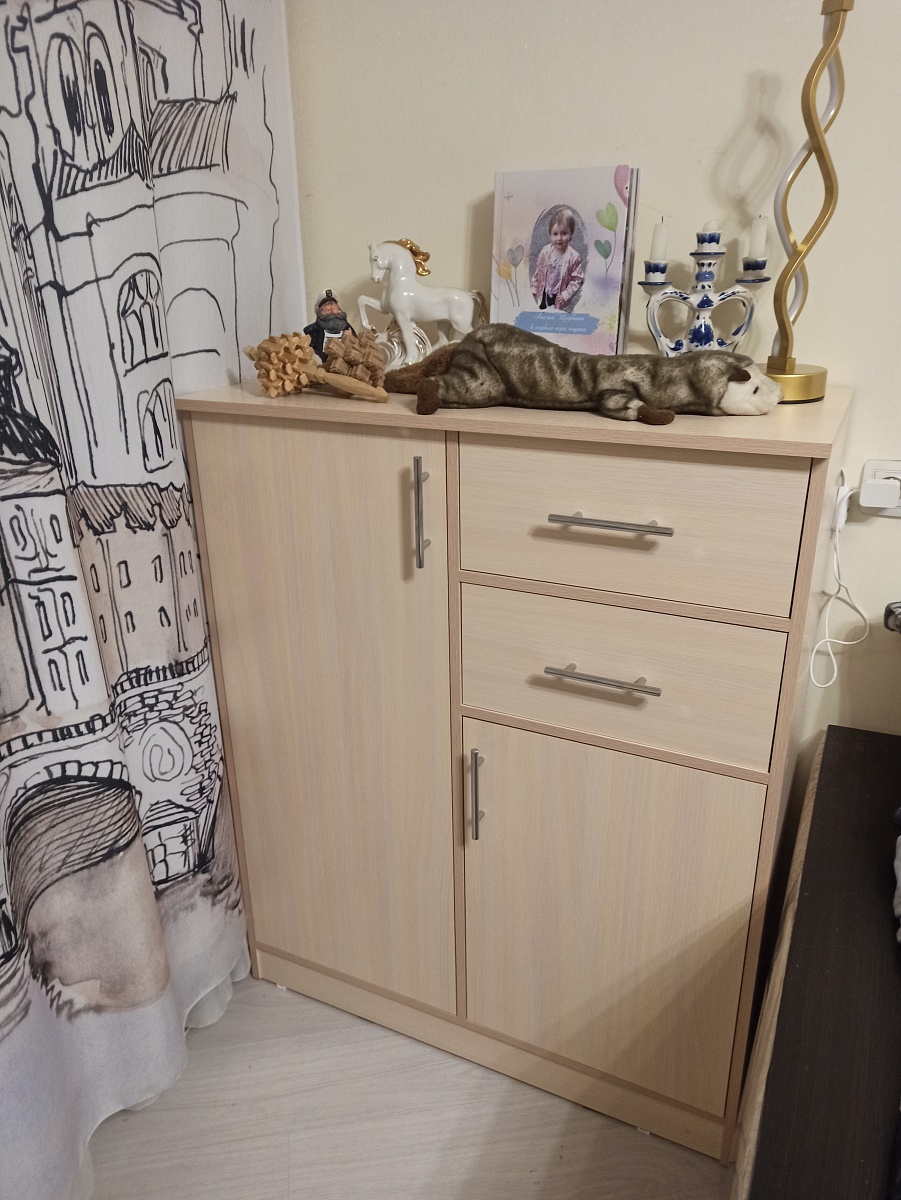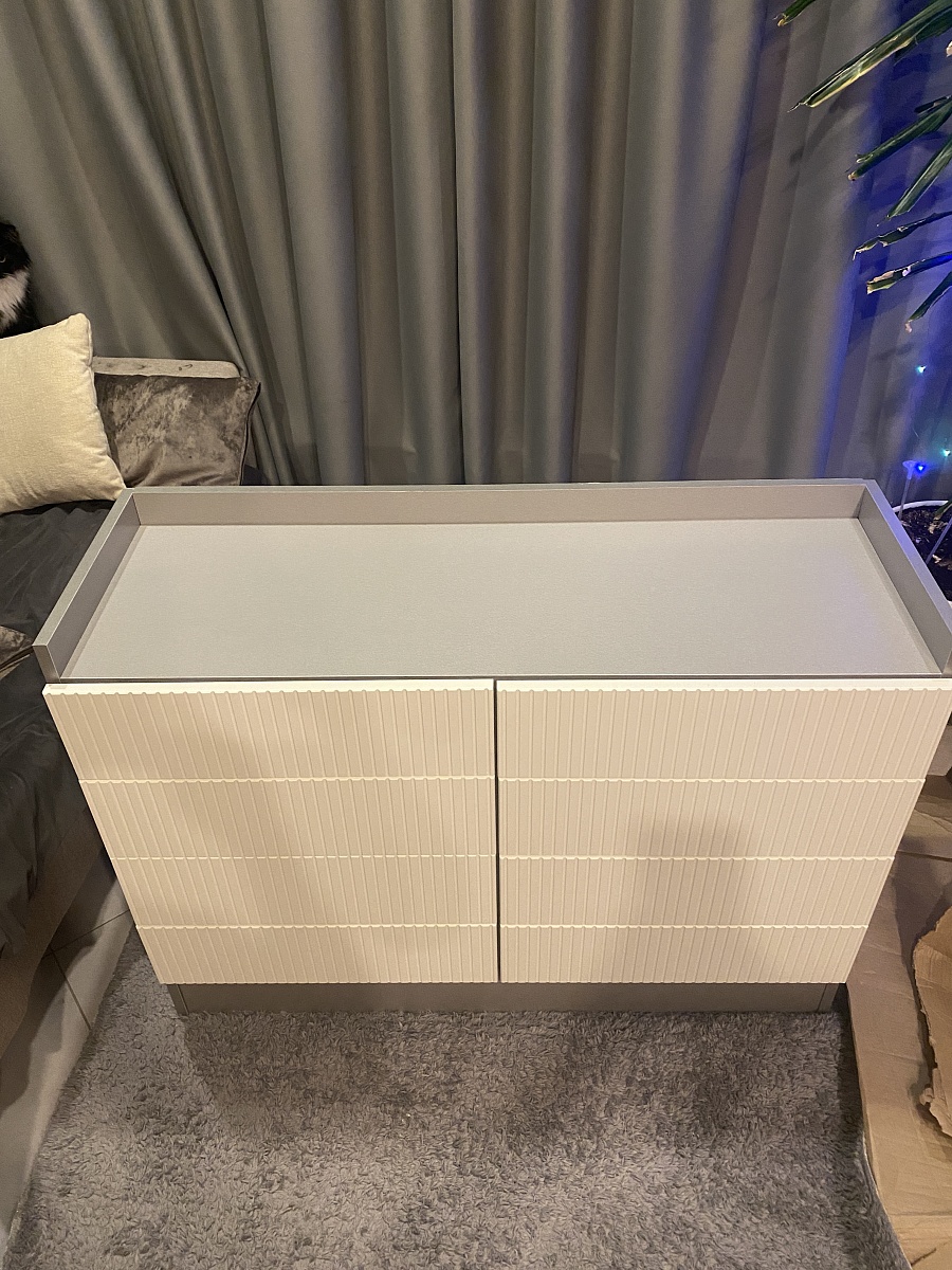Купили мы этот комод из раздела «распродажа» за 20 тысяч. Доставка была очень веселая. Сначала привезли часть нашего комода , часть чужого , потом был довоз двух деталей , потом еще один довоз остальных… Стали собирать - комод , ящики собрали , а с механизмами push to open возникла проблема. Вызвали их сборщика. Собрал , но скидку не сделал за то что половина уже была собрана. Ну ладно , слава богу доехал и собрался 🤭. По впечатлениям- красивый , не вместительный совсем , половина не поместилось из старого икеевского комода ☹️ есть места со сколами к сожалению. Механизмы работают с усилием. Я по другому это себе представляла , ну может разработаются еще