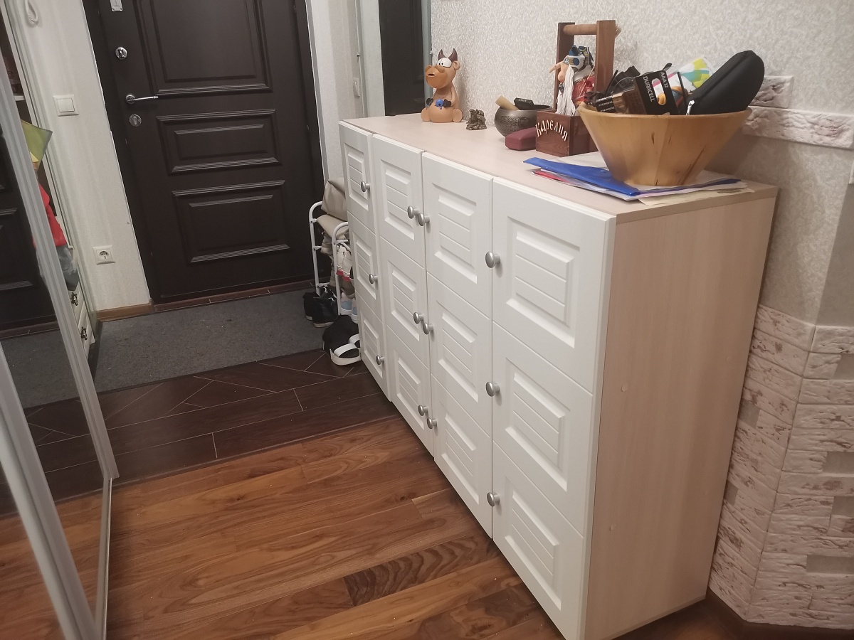 Заказ 00000803677, изделие Шкаф книжный 2 №1 BMS (800х2100х400)Шкаф мне понравился. Все детали сделаны аккуратно, засверловка в нужных местах. Две полки являются ребрами жесткости, так что шкаф стоит прочно, к тому же конструкция предусматривает возможность подвешивания на стену. Единственное что расстроило это отсутствие сзади снизу среза под плинтус, пришлось делать его самостоятельно, чтобы поставить шкаф вплотную к стене. Зато порадовало качество боковых стенок, после срезки угла лобзиком получился ровный край без сколов на поверхности. Все детали имеют наклейку с номером, указанным в инструкции по сборке, что заметно ее упрощает.Сделали и доставили очень быстро, особенно в сравнении с другой мебелью из разных магазинов. К примеру комод заказывала из другого магазина и его готовности я ждала месяц, тогда как шкаф приехал через неделю после оформления заказа.
