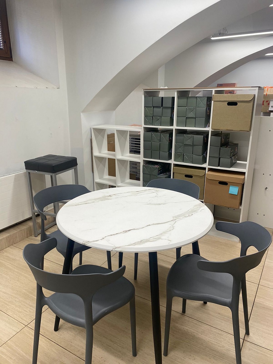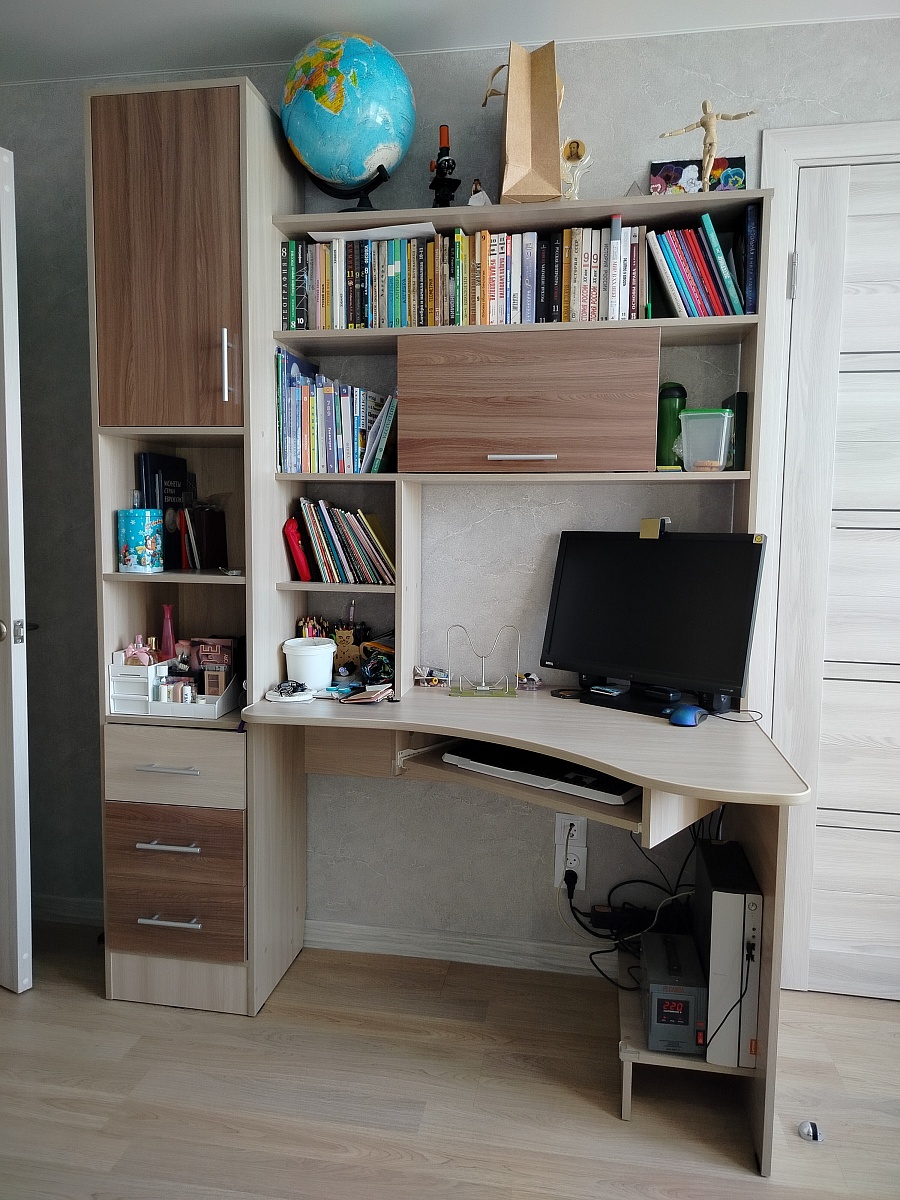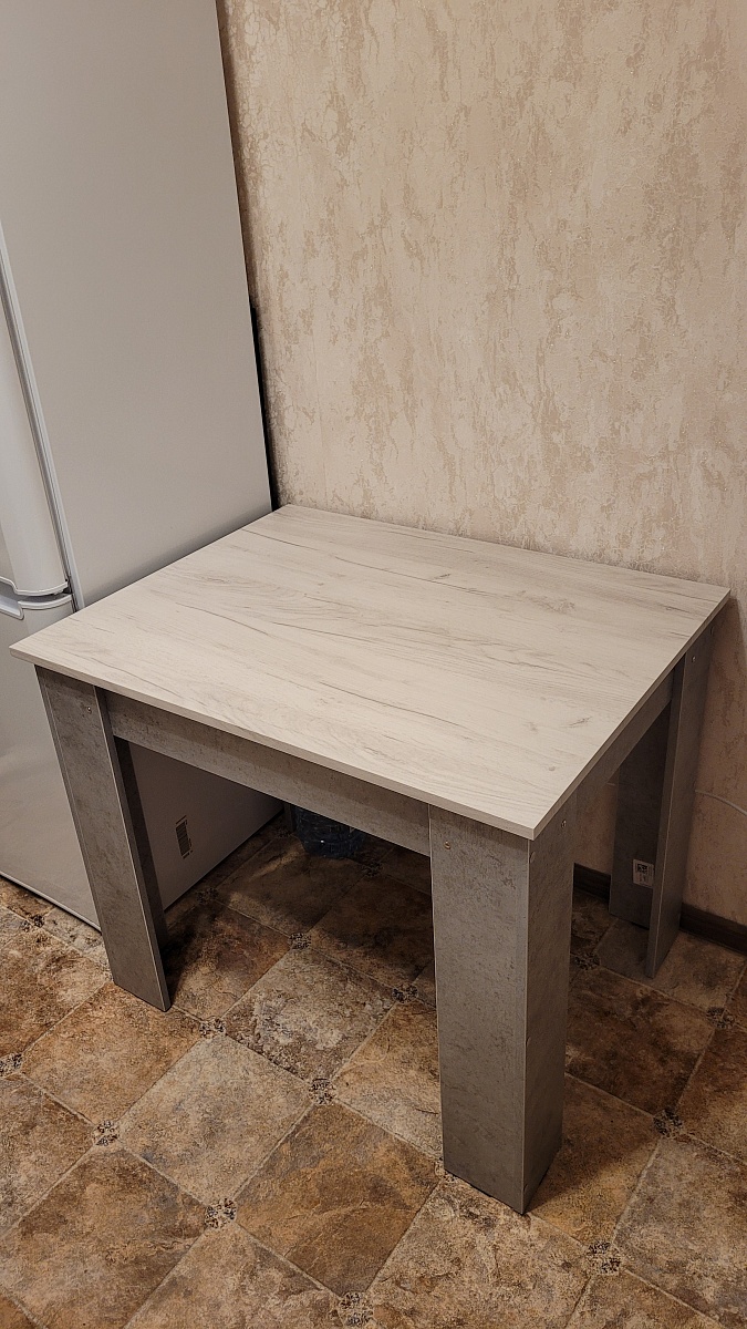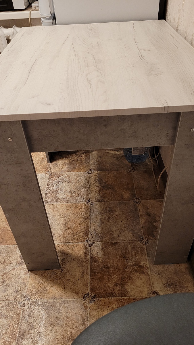 Заказ 00000756581.Переехала, и нужны были на кухню новый стол и тумбочка. Хотелось, чтобы они сочетались между собой и с уже имеющимся кухонным гарнитуром, и при этом по размеру подходили. Стол был нужен небольшой, 90×70см. Поэтому решила заказать в Бестмебель, т.к знала, что можно сделать как в конструкторе всё под свои хотелки. Изготовили всё быстро, привезли в срок.Пользуюсь третий месяц, нареканий нет. Столешницу выбрала из МДФ. Она у меня светлая, но легко протирается обычной влажной кухонной тряпочкой.Единственное, с чем не совсем угадала - что ножки "уголком" гораздо сильнее сужают пространство для сидения, когда задвигаешь стул, чем я думала. Для женщины среднего телосложения - пойдет, но бедра оч плотно соприкасаются с ножками стола, если задвинуть стул. Сильно долго не просидишь, поэтому обычно потом отодвигаюсь.Сборщика вызывала не от Бестмебель, т.к.у меня уже был свой проверенный мастер. В комплекте был крепёж. Но мастер сказал, что одни из болтов были слишком короткие. Он мне их заменил, так что для меня это не стало проблемой.С учетом цены и моей задачи, в целом отличный вариант!