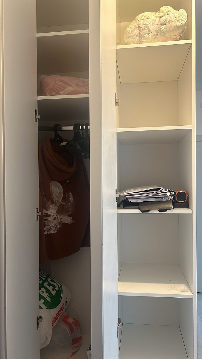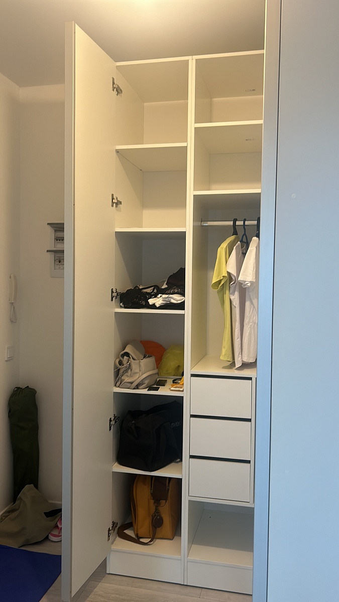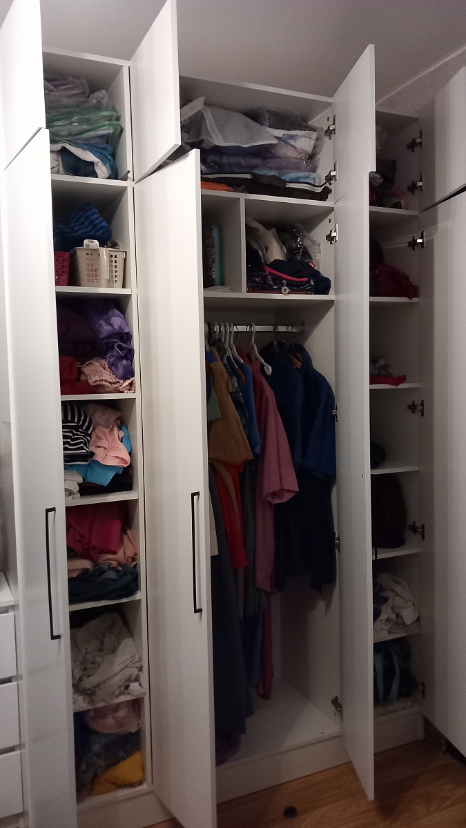 Заказывала шкаф по индивидуальным размерам Заказ 00000762446,Очень быстро сделали и доставили шкаф, сборка была на следующий день. Всё в срок аккуратно.По моей просьбе убрали полку нижнюю в платеном отделе,и даже вычли стоимость этой полки из суммы заказа,чему была приятно удивлена.Шкаф оправдал ожидания простой, добротный ,бюджетный и очень вместительный ,что видно по фото.