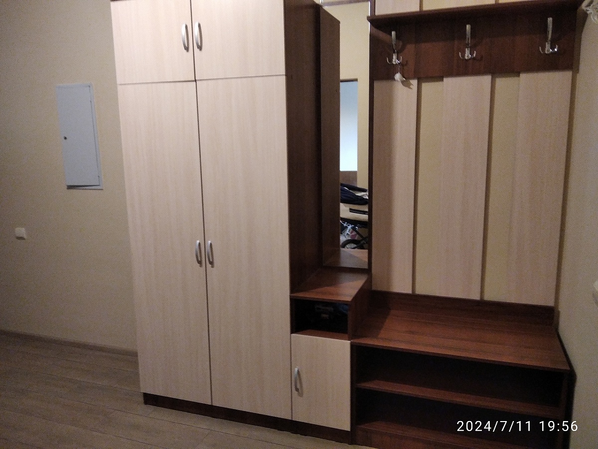 Заказ номер 00000726455.Хорошая прихожая. Не стоит ждать супер качества за небольшие деньги. Качество неплохое, хотя фурнитура так себе( особенно петли), но на первое время подойдет. Собирали самостоятельно, инструкции по сборке нет, есть только схема- общий вид, но собирается интуитивно понятно. Очень порадовало, что сотрудники помогли немного изменить вид шкафа( сделать глубину побольше и штангу для одежды расположить горизонтально) за небольшую доплату. Стоит заказывать если после капитального ремонта или стройки финансов осталось не очень много- то это хороший выход.