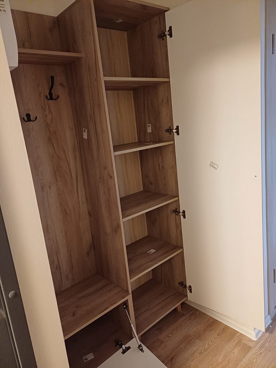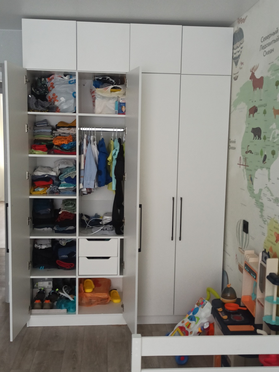 Нужен был стеллаж в угол детской в чисто утилитарных целях - сложить коробки с неиспользуемыми книжками-игрушками, чтобы был отсек для детских чемоданов и т.д. Немного умею работать с мебелью, поэтому сначала сам хотел из ЛДСП собрать (прикол у меня такой, кто-то на рыбалку ездит, а я мебель сам собираю, увлекательно типа как лего в детстве). Но на всякий случай посмотрел варианты в продаже, и был приятно удивлён что у данной компании стеллаж, полностью соответствующий моим требованиям, по цене выходил дешевле, чем самому закупать ЛДСП (не считая реза, кромок, и моего времени на продумывание чертежа). Короче, заказал, номер заказа 00000735749. Из претензий только немного неправильно сделаны дырки под полкодержатели в 2 местах, вообще мог бы и сам сделать другие, но дочь решила что так даже веселее (на фото видно, что полки несимметричны). Ещё крепления к стене взял другие, не из комплекта, в комплекте какие-то несерьёзно-маленькие были, а в детской мебель надо укреплять, на мой взгляд. Но за такие деньги это всё просто придирки для полноты и информации. Покупкой доволен абсолютно.
