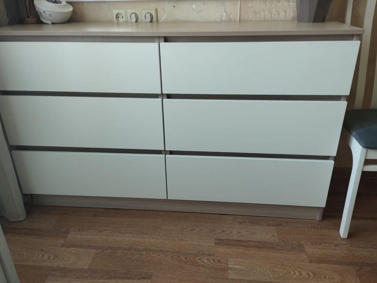 Заказ 00000694204, изделие ЭСКИЗ №00000694204 Комод Нордли Nordli 11 (1500х990х470)Были куплены изначально шкафы - цвет золотой дуб крафт у другого производителя. На разных сайтах искала возможность изготовить комод такого же цвета по своим размерам (стоимость получалась дороже, чем я отдала за шкафы )). Случайно наткнулась на бестмебель. Выбрала цвет, свой размер и то, что хочу. Т.к. основной критерий- ящики для нижнего белья и полки для хранения постельного белья и подушек. Единственное, что докупила отдельно - ручки. Т.к. у шкафов уже ручки были. Привезли всё в срок, мой папа собрал его. Я очень довольна .